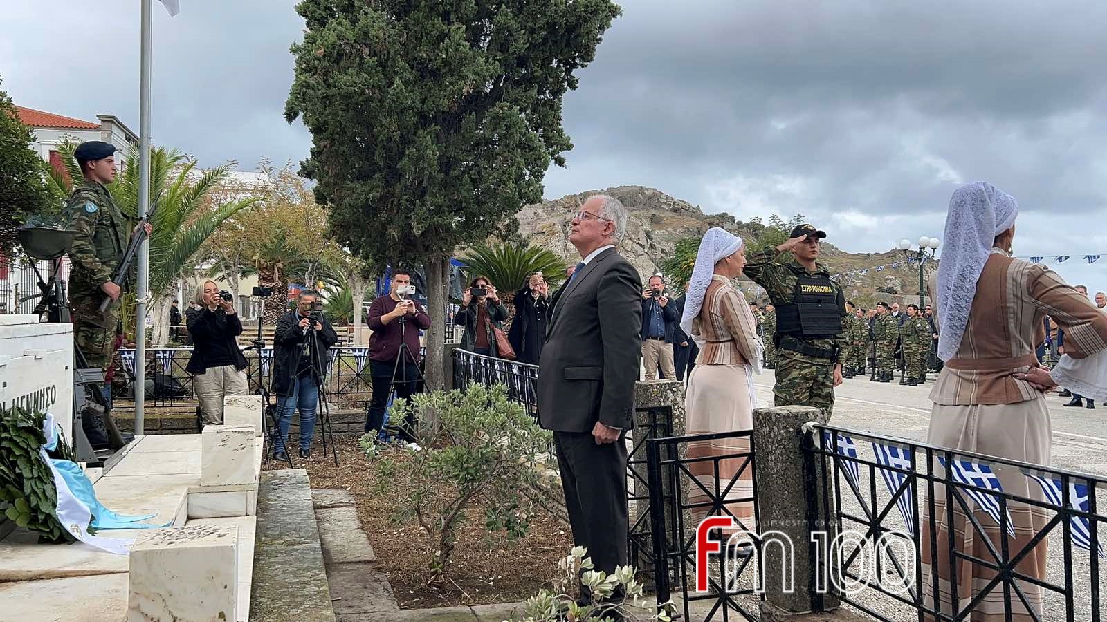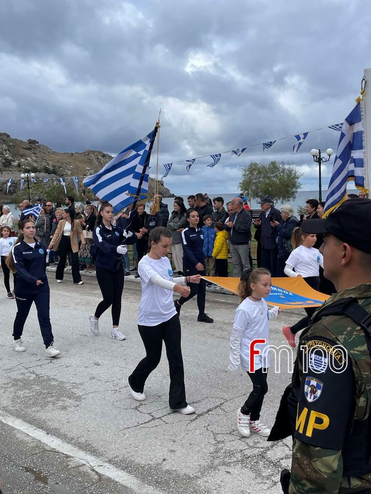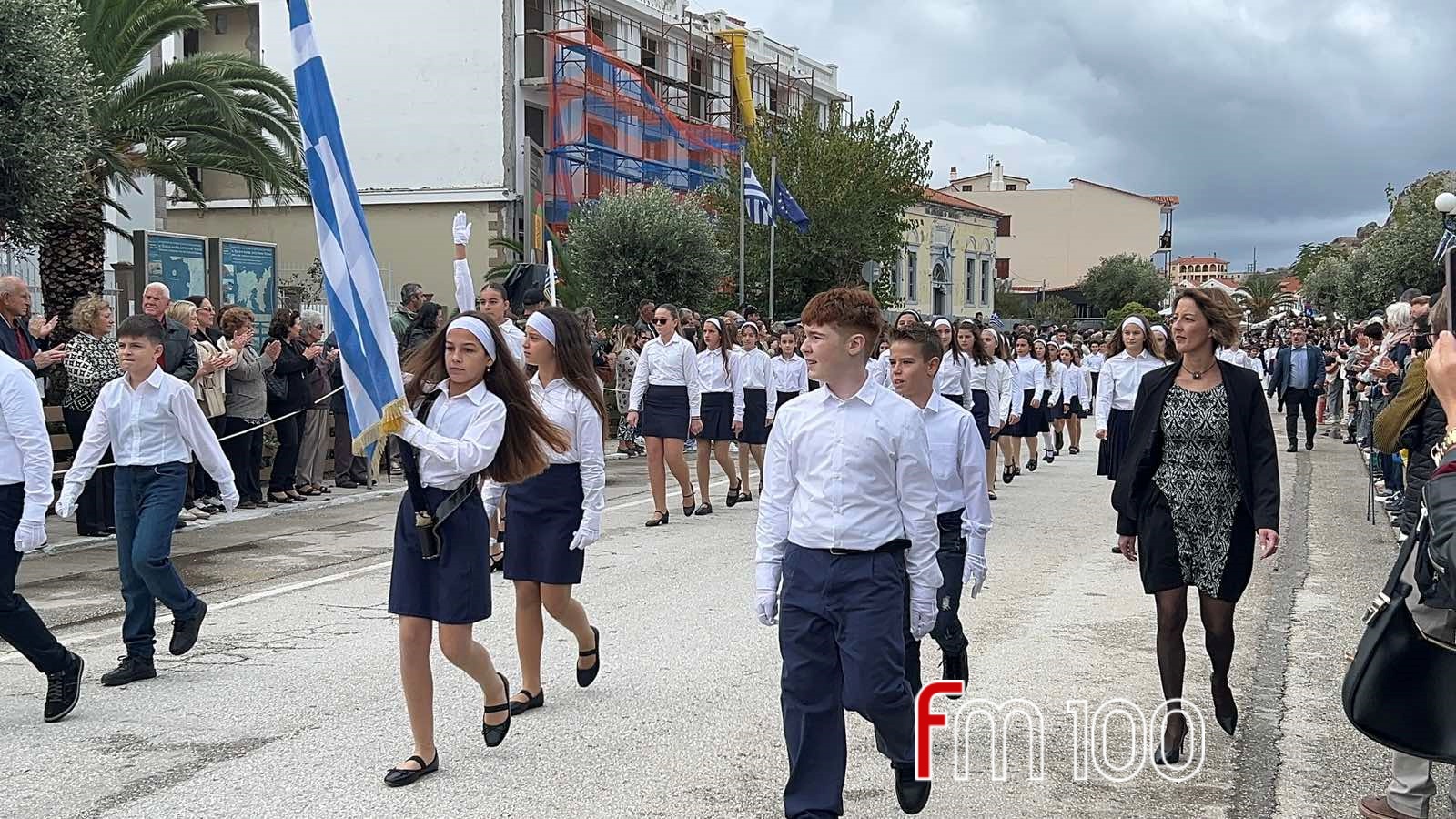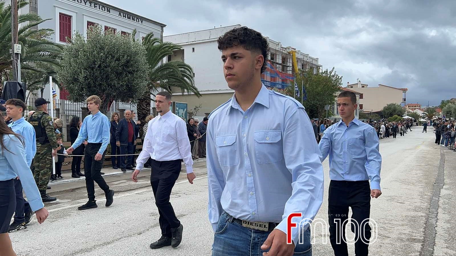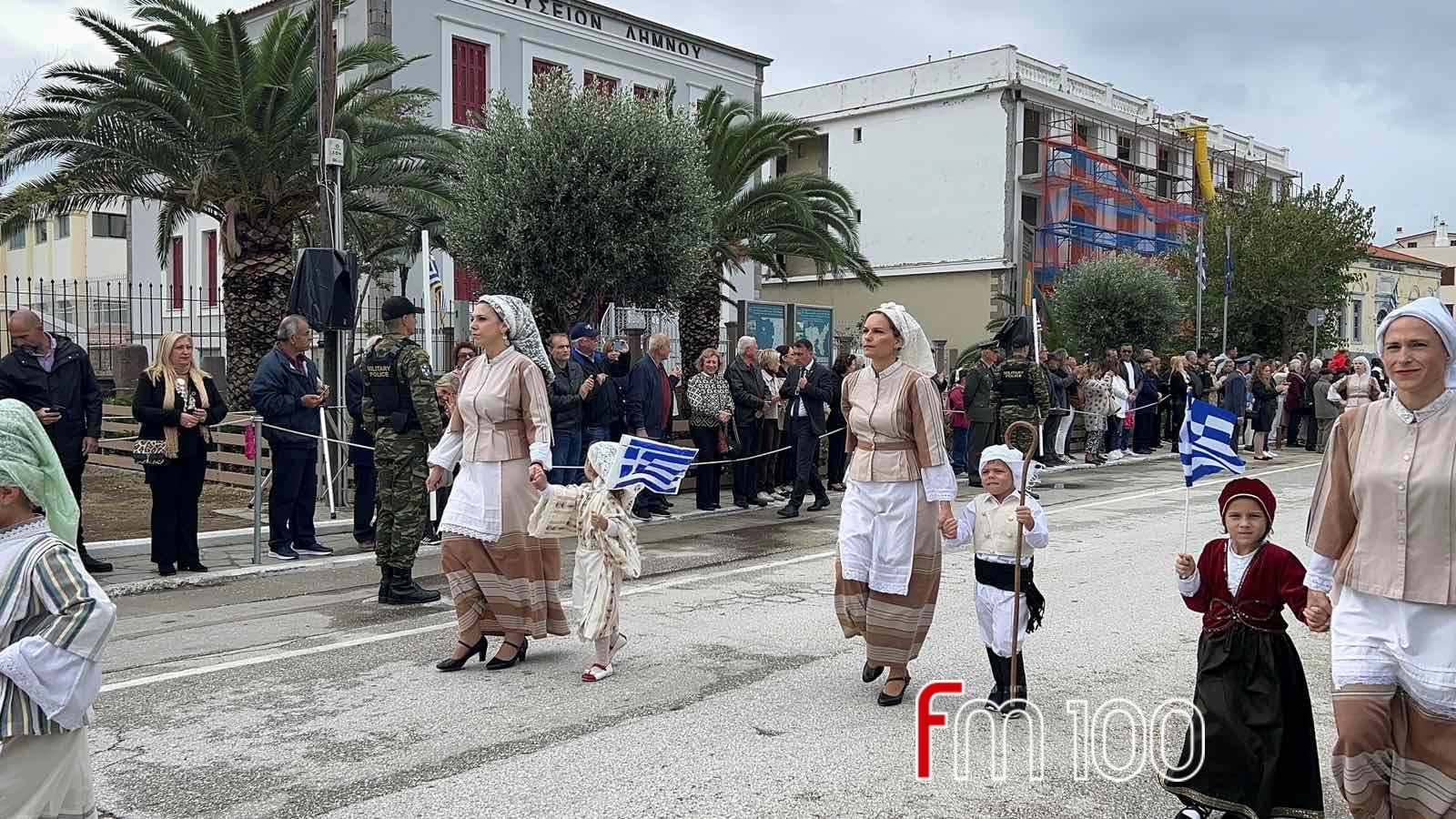 Ακολούθησε η μαθητική παρέλαση στο Ρωμαίικο Γιαλό την οποία παρακολούθησαν ο Πρόεδρος της Δημοκρατίας και οι επίσημοι προσκεκλημένοι. Στην παρέλαση συμμετείχαν μαθητές και μαθήτριες από τα σχολεία της πόλης, καθώς και πολιτιστικοί και αθλητικοί σύλλογοι του νησιού, προσφέροντας ένα ξεχωριστό θέαμα με παραδοσιακές φορεσιές και έντονο παλμό.