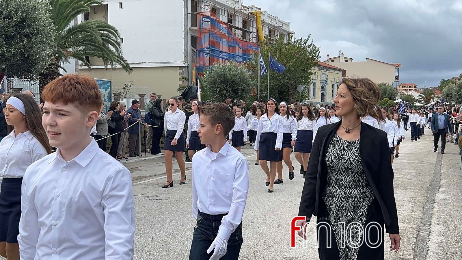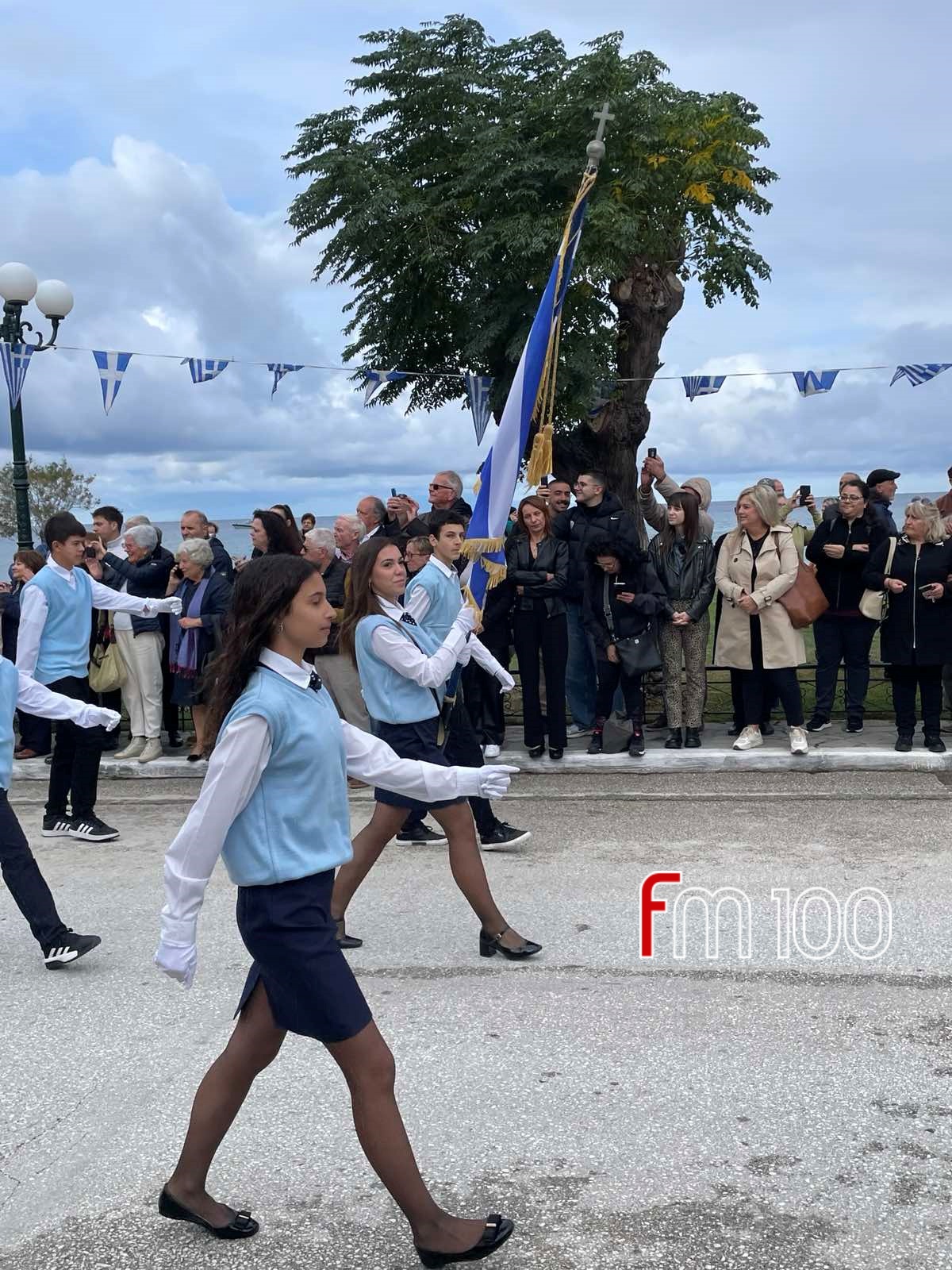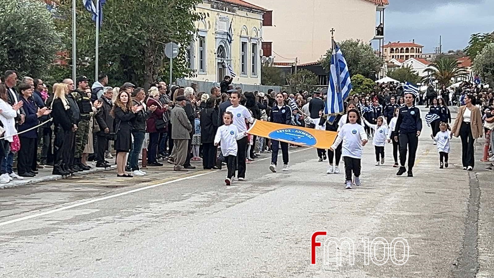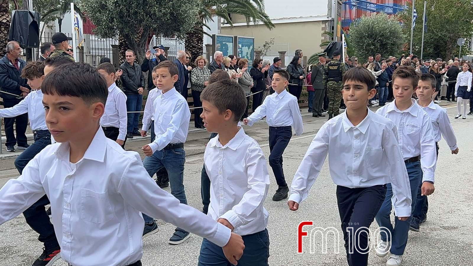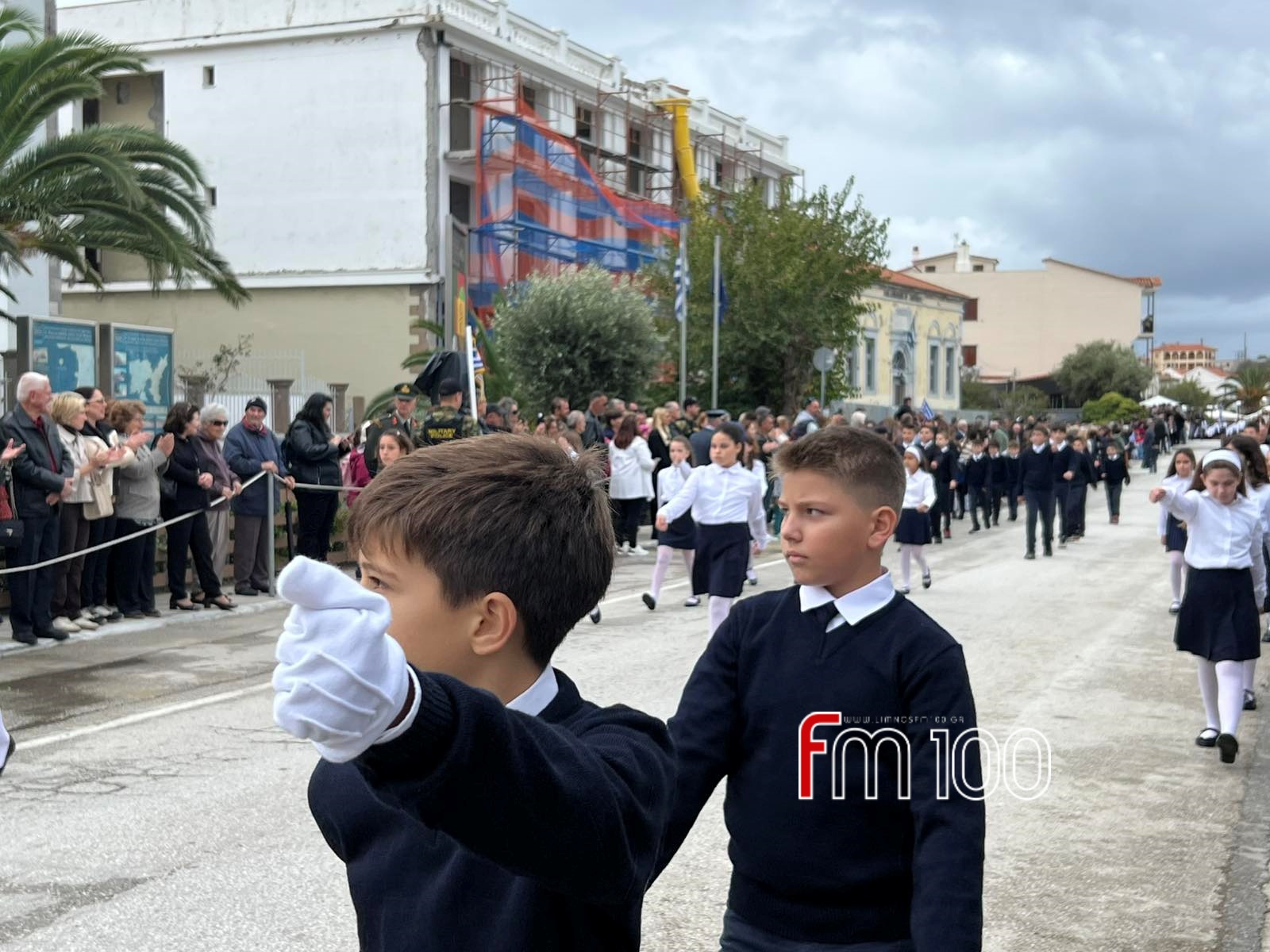 Ακολούθησε η μαθητική παρέλαση στο Ρωμαίικο Γιαλό την οποία παρακολούθησαν ο Πρόεδρος της Δημοκρατίας και οι επίσημοι προσκεκλημένοι. Στην παρέλαση συμμετείχαν μαθητές και μαθήτριες από τα σχολεία της πόλης, καθώς και πολιτιστικοί και αθλητικοί σύλλογοι του νησιού, προσφέροντας ένα ξεχωριστό θέαμα με παραδοσιακές φορεσιές και έντονο παλμό.