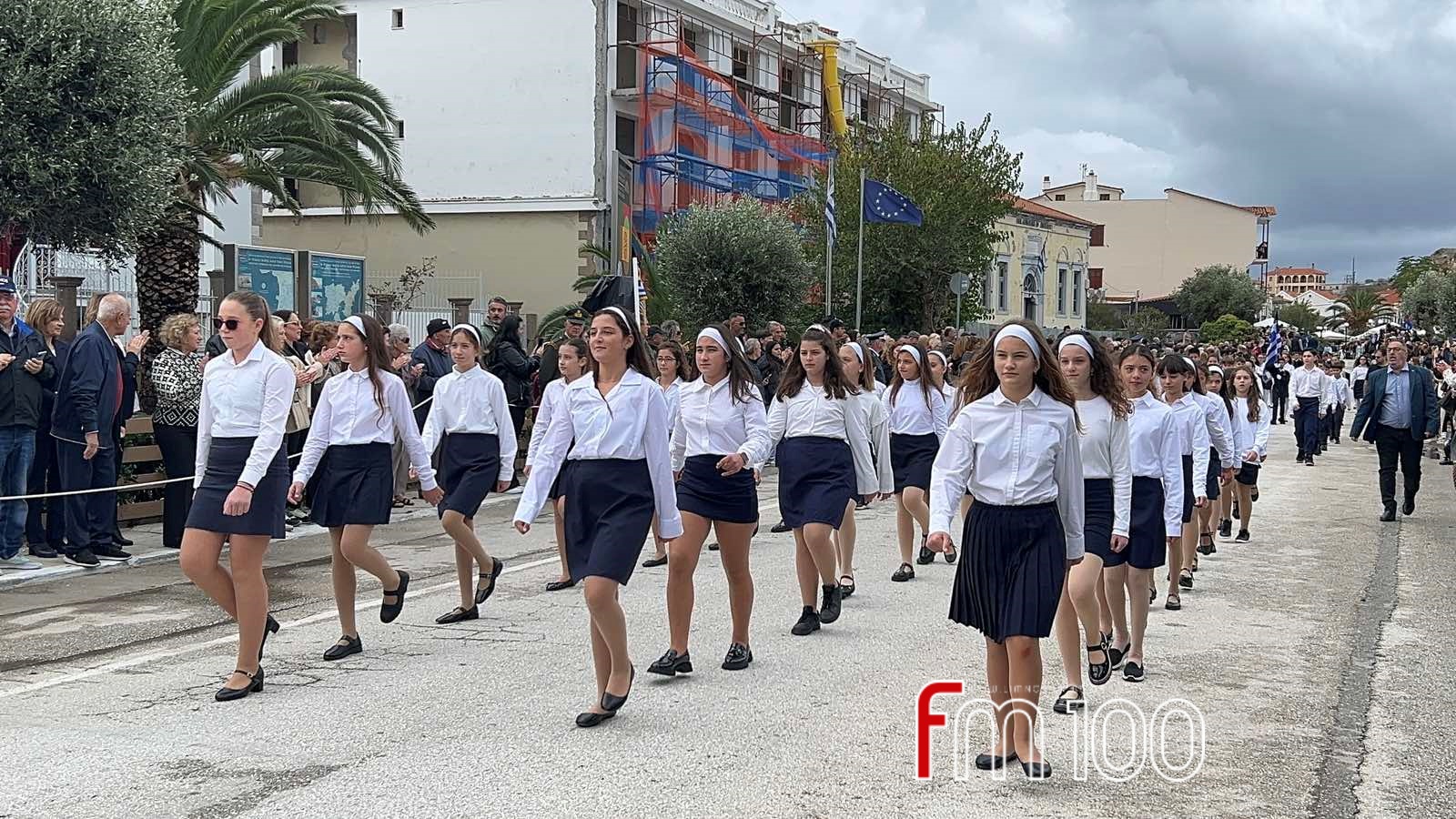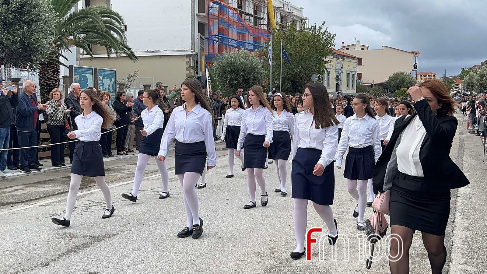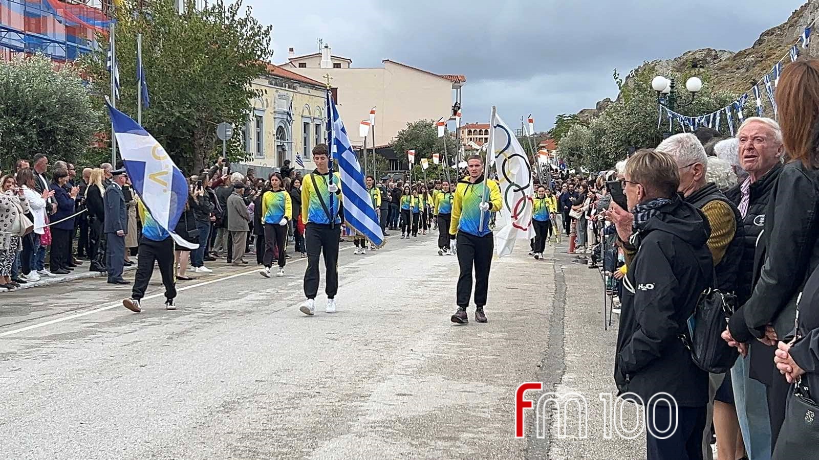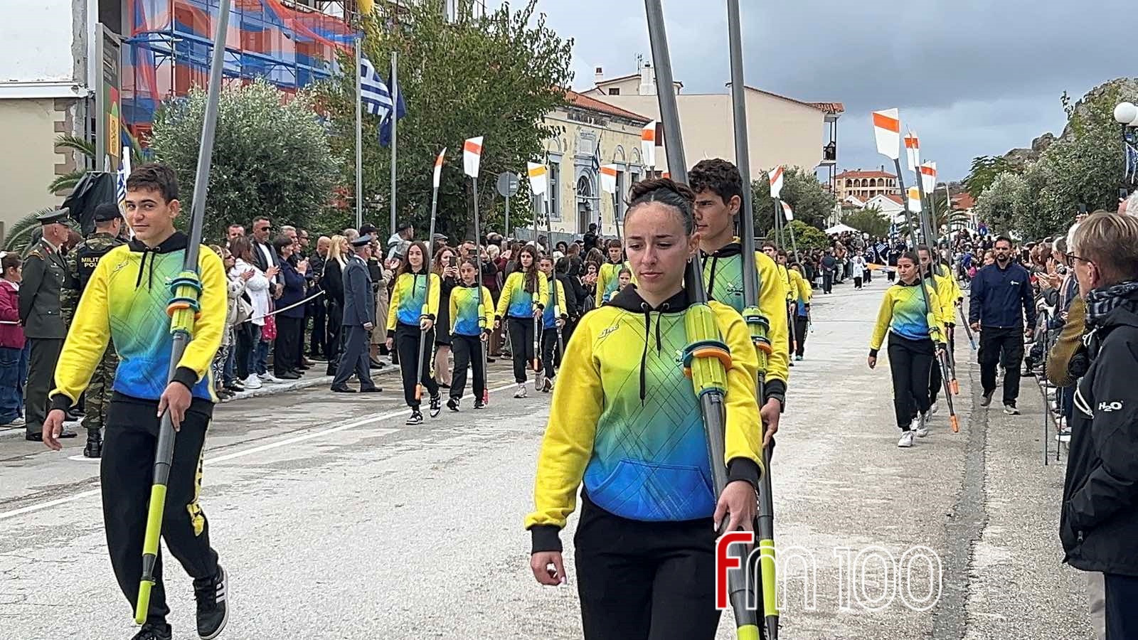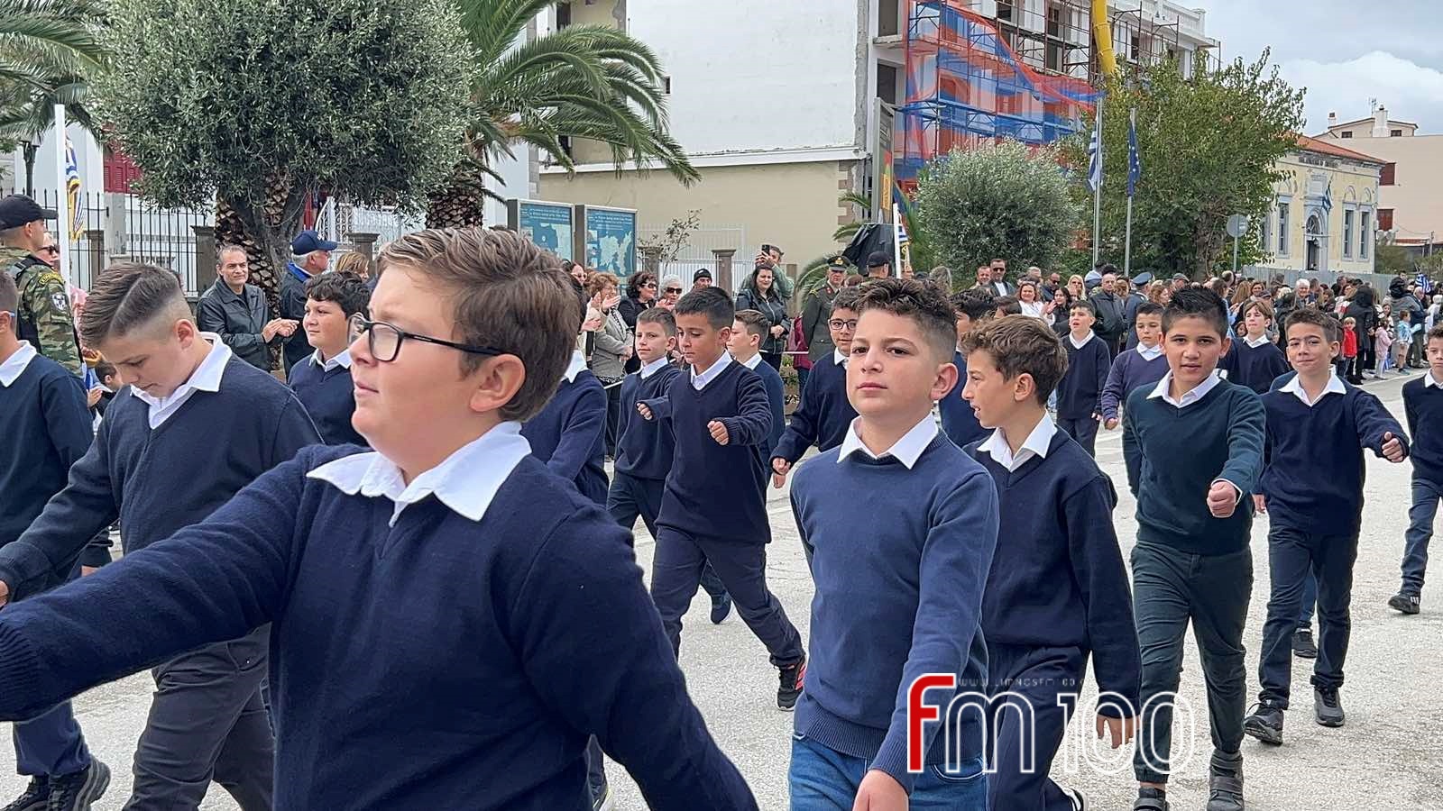 Ακολούθησε η μαθητική παρέλαση στο Ρωμαίικο Γιαλό την οποία παρακολούθησαν ο Πρόεδρος της Δημοκρατίας και οι επίσημοι προσκεκλημένοι. Στην παρέλαση συμμετείχαν μαθητές και μαθήτριες από τα σχολεία της πόλης, καθώς και πολιτιστικοί και αθλητικοί σύλλογοι του νησιού, προσφέροντας ένα ξεχωριστό θέαμα με παραδοσιακές φορεσιές και έντονο παλμό.