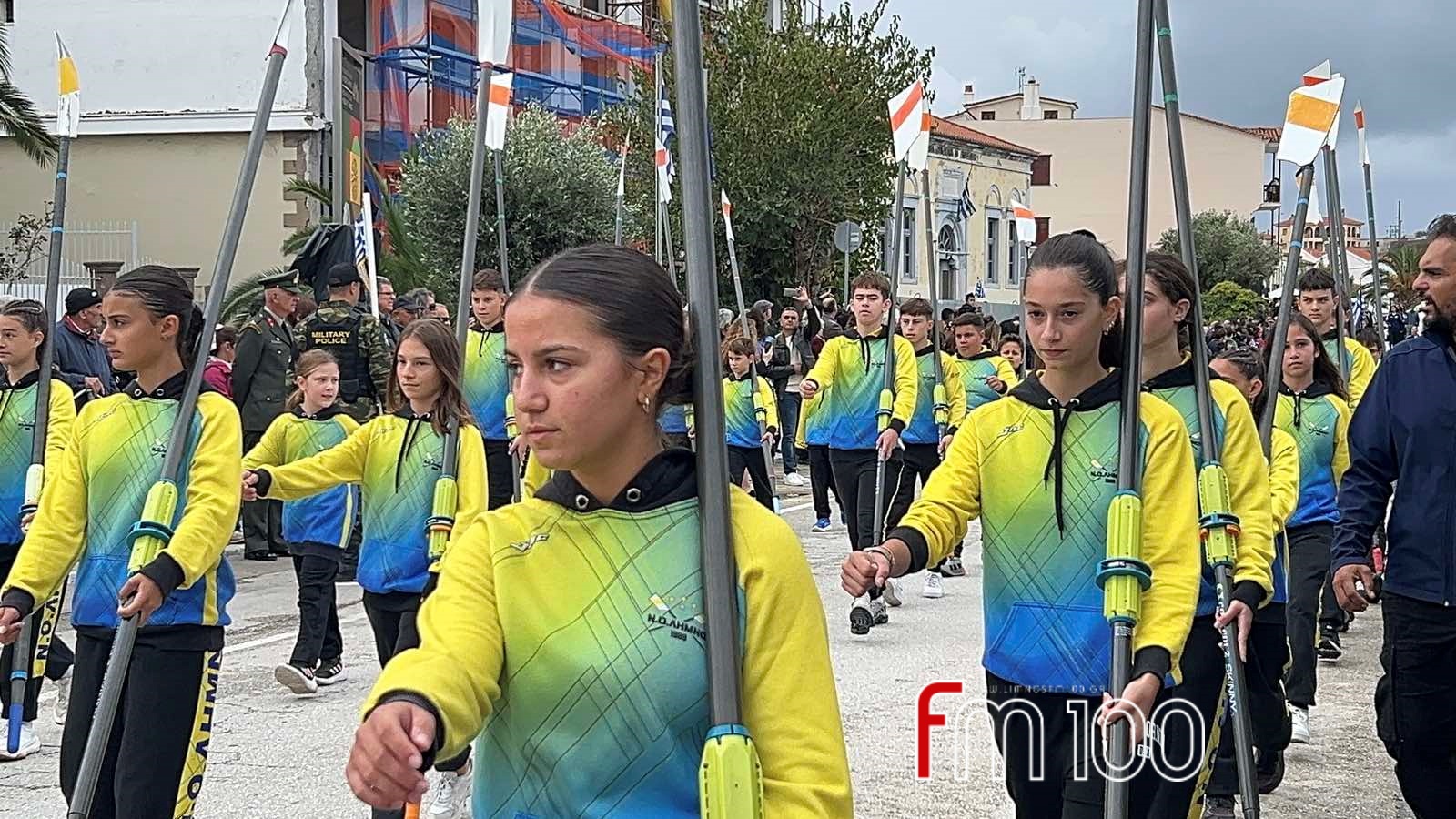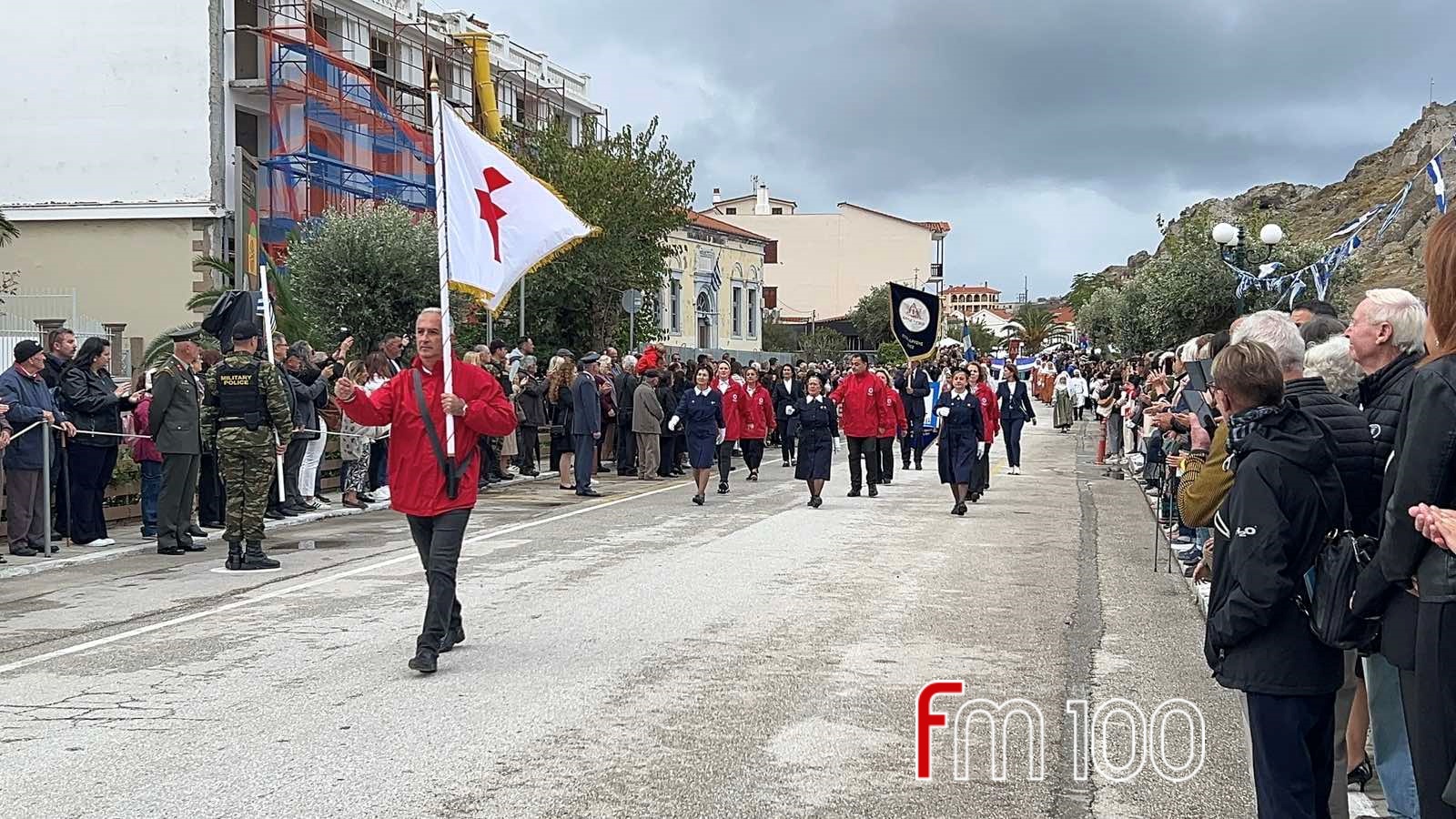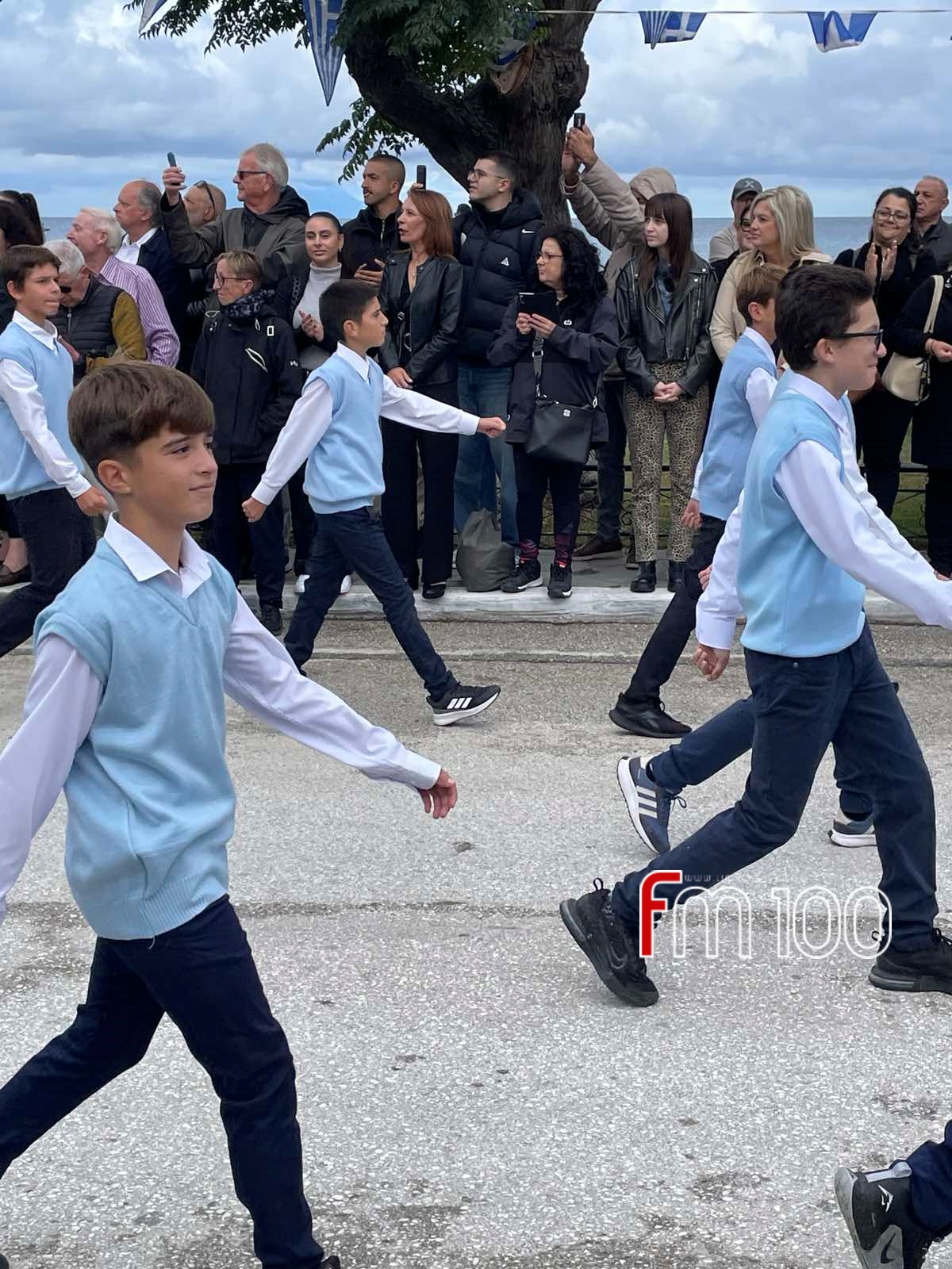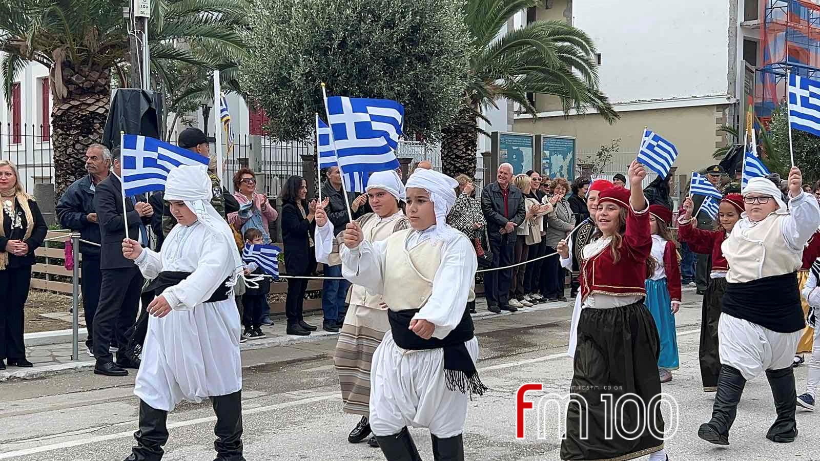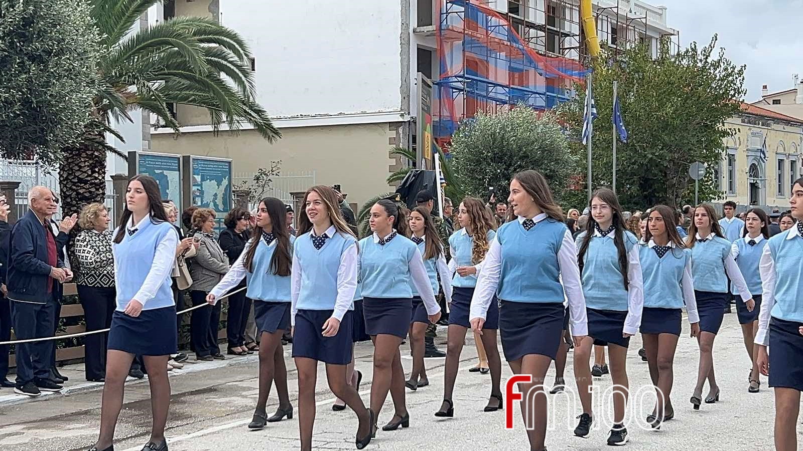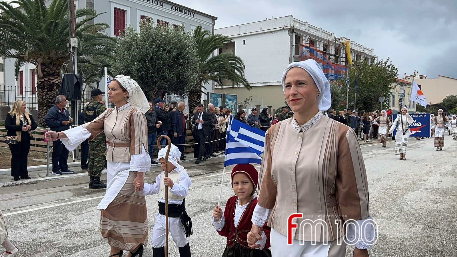 Ακολούθησε η μαθητική παρέλαση στο Ρωμαίικο Γιαλό την οποία παρακολούθησαν ο Πρόεδρος της Δημοκρατίας και οι επίσημοι προσκεκλημένοι. Στην παρέλαση συμμετείχαν μαθητές και μαθήτριες από τα σχολεία της πόλης, καθώς και πολιτιστικοί και αθλητικοί σύλλογοι του νησιού, προσφέροντας ένα ξεχωριστό θέαμα με παραδοσιακές φορεσιές και έντονο παλμό.