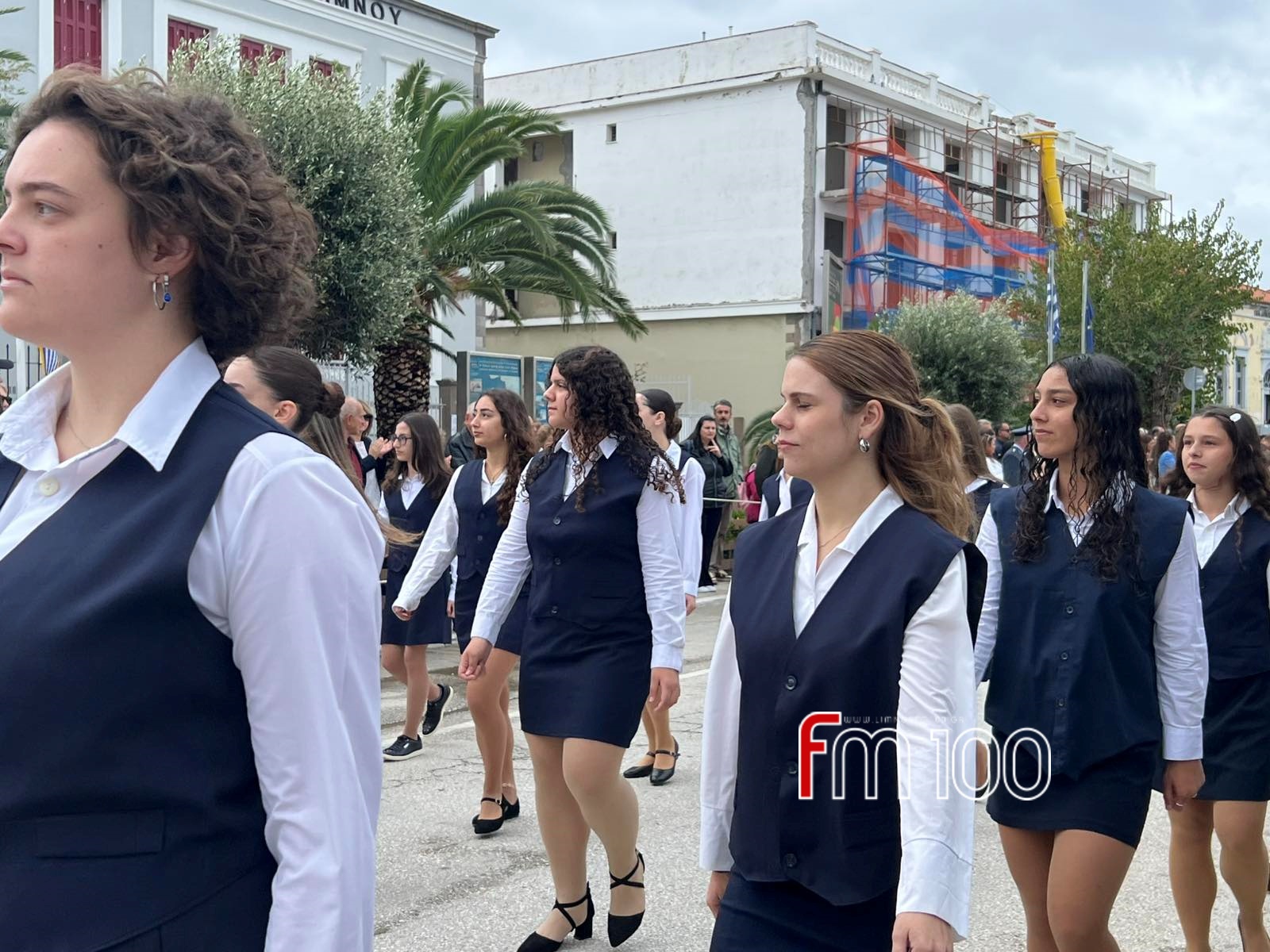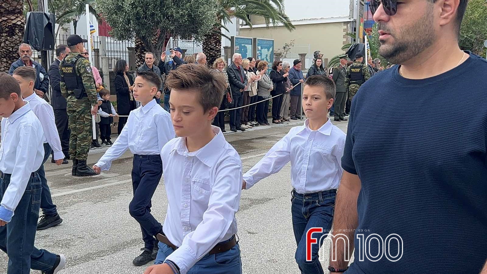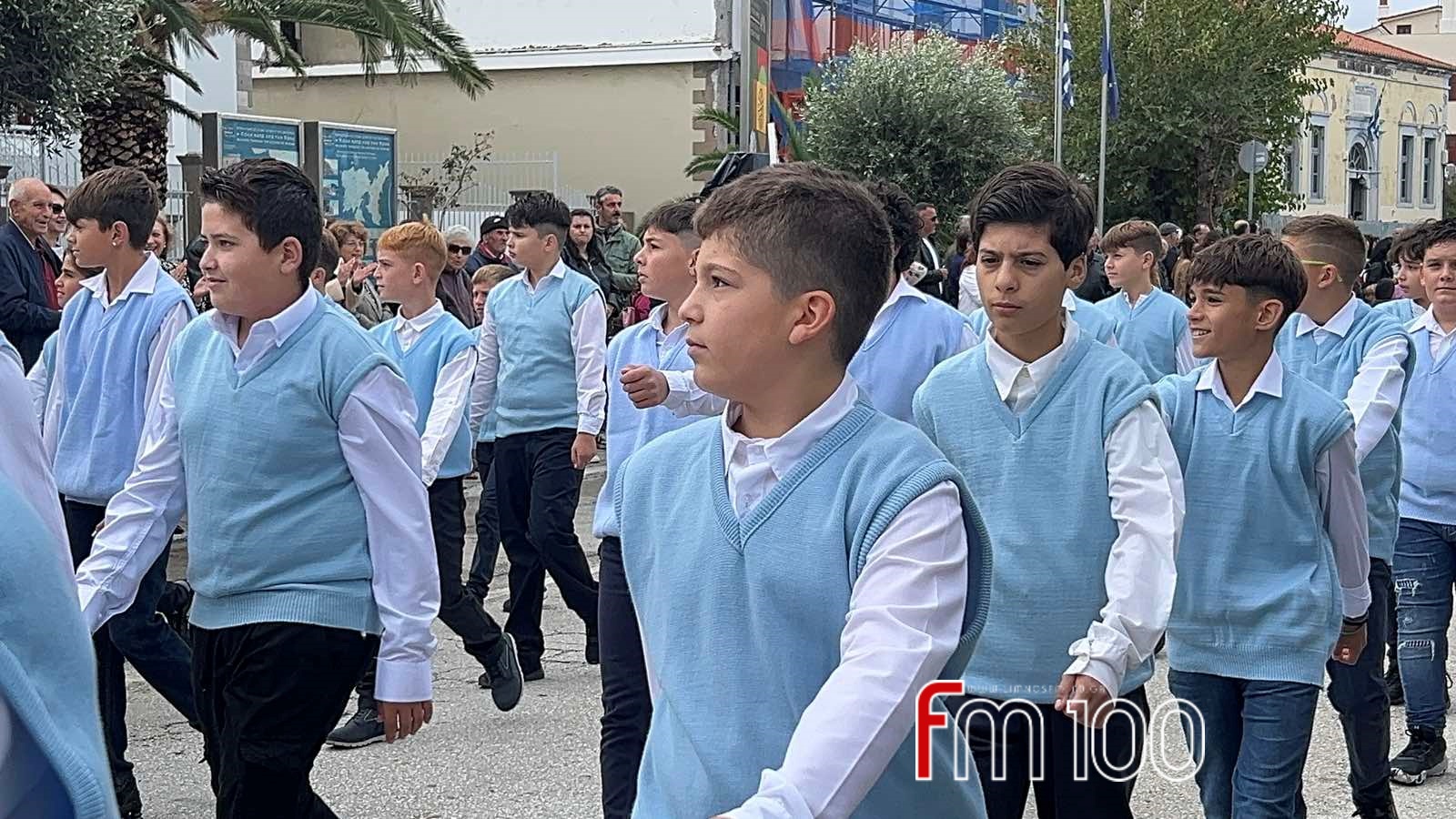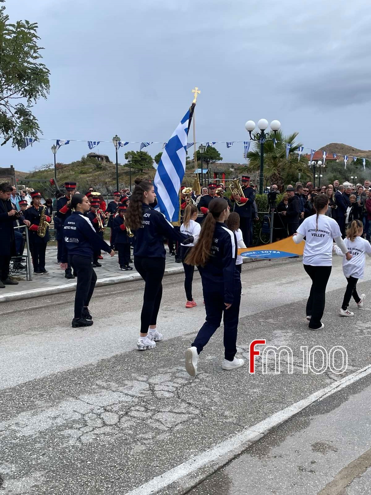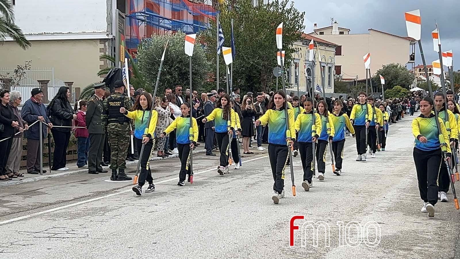 Ακολούθησε η μαθητική παρέλαση στο Ρωμαίικο Γιαλό την οποία παρακολούθησαν ο Πρόεδρος της Δημοκρατίας και οι επίσημοι προσκεκλημένοι. Στην παρέλαση συμμετείχαν μαθητές και μαθήτριες από τα σχολεία της πόλης, καθώς και πολιτιστικοί και αθλητικοί σύλλογοι του νησιού, προσφέροντας ένα ξεχωριστό θέαμα με παραδοσιακές φορεσιές και έντονο παλμό.