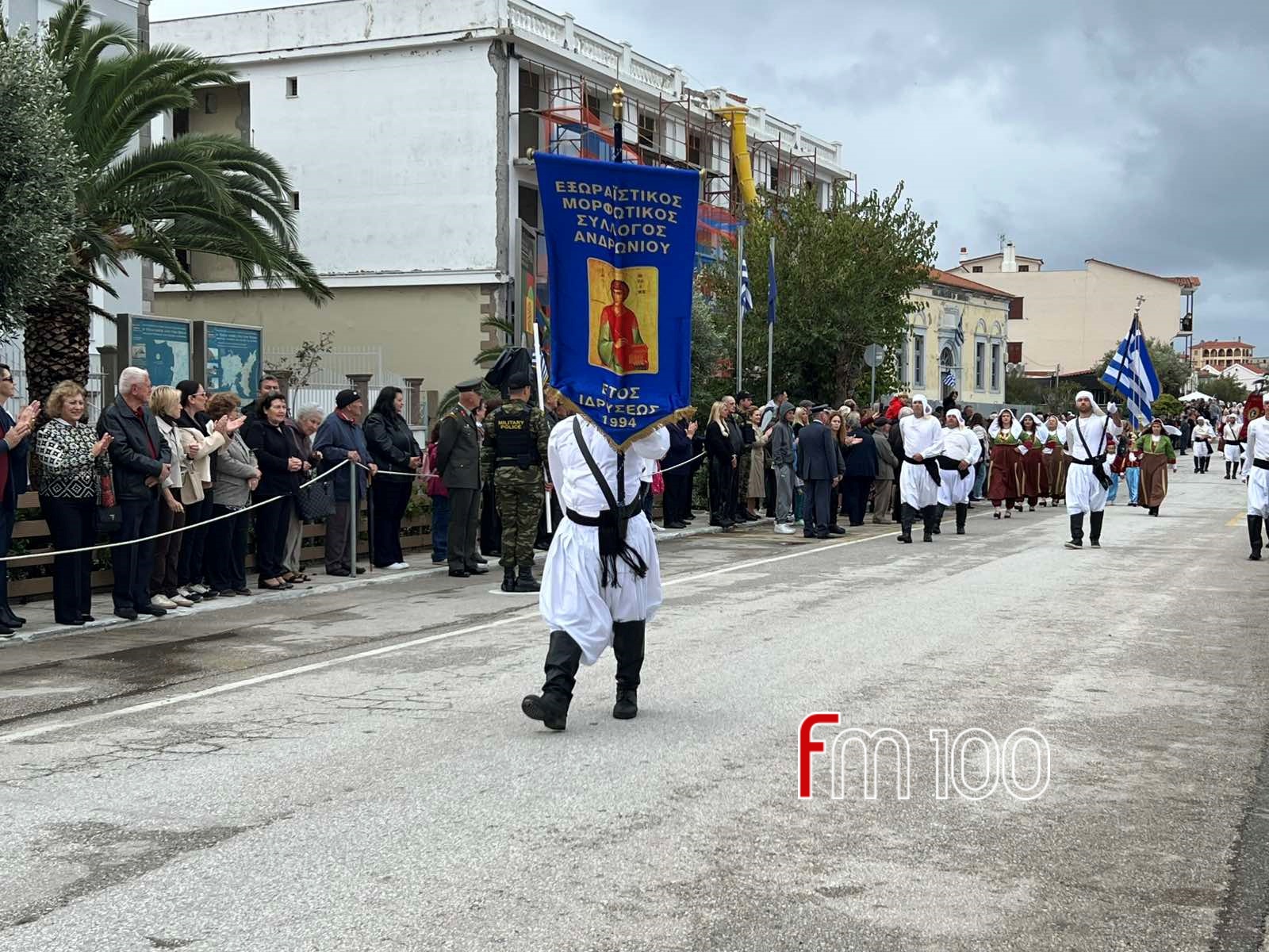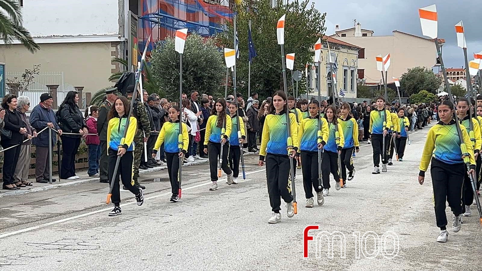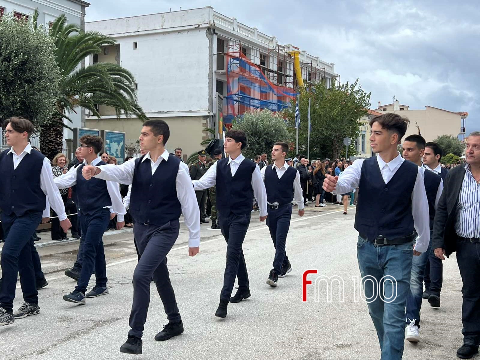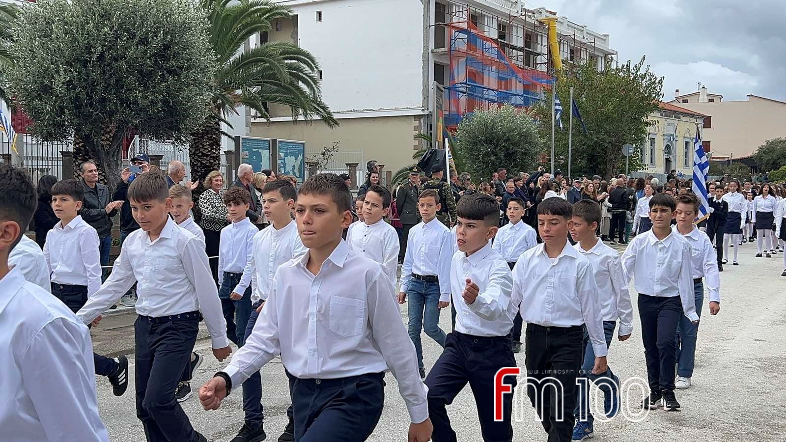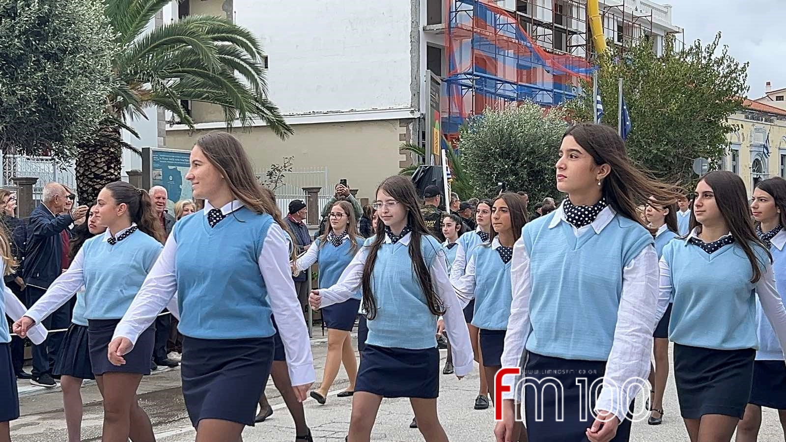 Ακολούθησε η μαθητική παρέλαση στο Ρωμαίικο Γιαλό την οποία παρακολούθησαν ο Πρόεδρος της Δημοκρατίας και οι επίσημοι προσκεκλημένοι. Στην παρέλαση συμμετείχαν μαθητές και μαθήτριες από τα σχολεία της πόλης, καθώς και πολιτιστικοί και αθλητικοί σύλλογοι του νησιού, προσφέροντας ένα ξεχωριστό θέαμα με παραδοσιακές φορεσιές και έντονο παλμό.