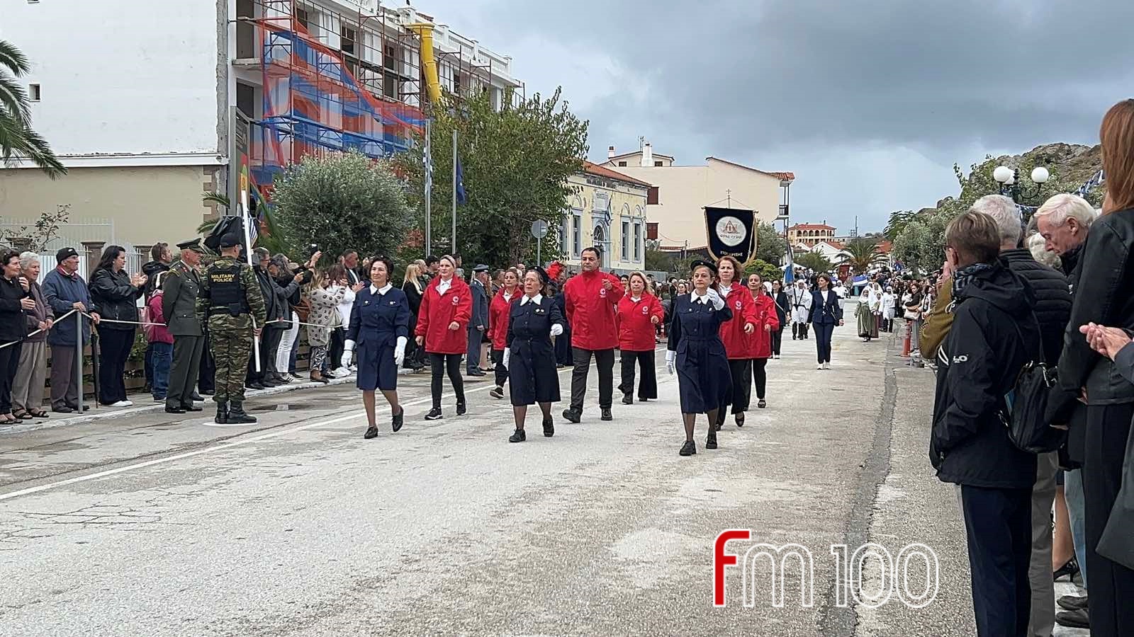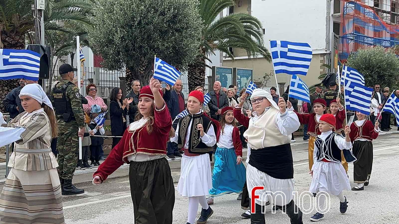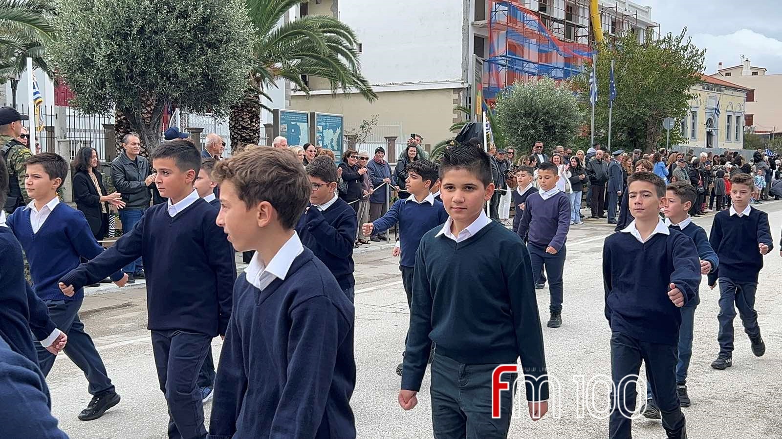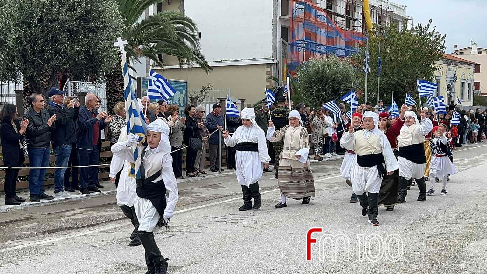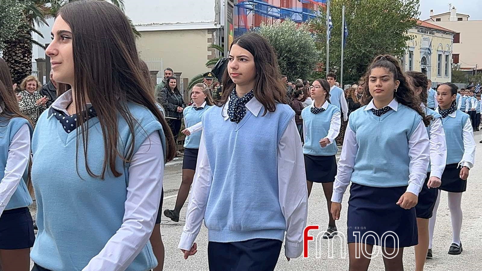 Ακολούθησε η μαθητική παρέλαση στο Ρωμαίικο Γιαλό την οποία παρακολούθησαν ο Πρόεδρος της Δημοκρατίας και οι επίσημοι προσκεκλημένοι. Στην παρέλαση συμμετείχαν μαθητές και μαθήτριες από τα σχολεία της πόλης, καθώς και πολιτιστικοί και αθλητικοί σύλλογοι του νησιού, προσφέροντας ένα ξεχωριστό θέαμα με παραδοσιακές φορεσιές και έντονο παλμό.