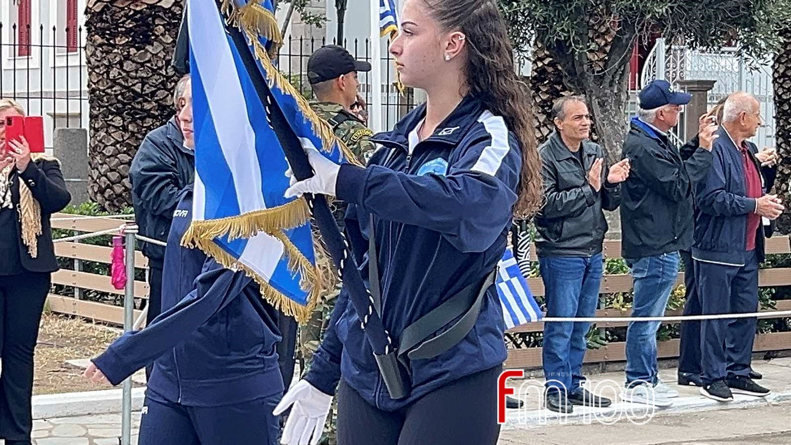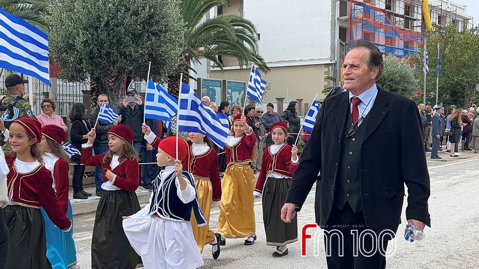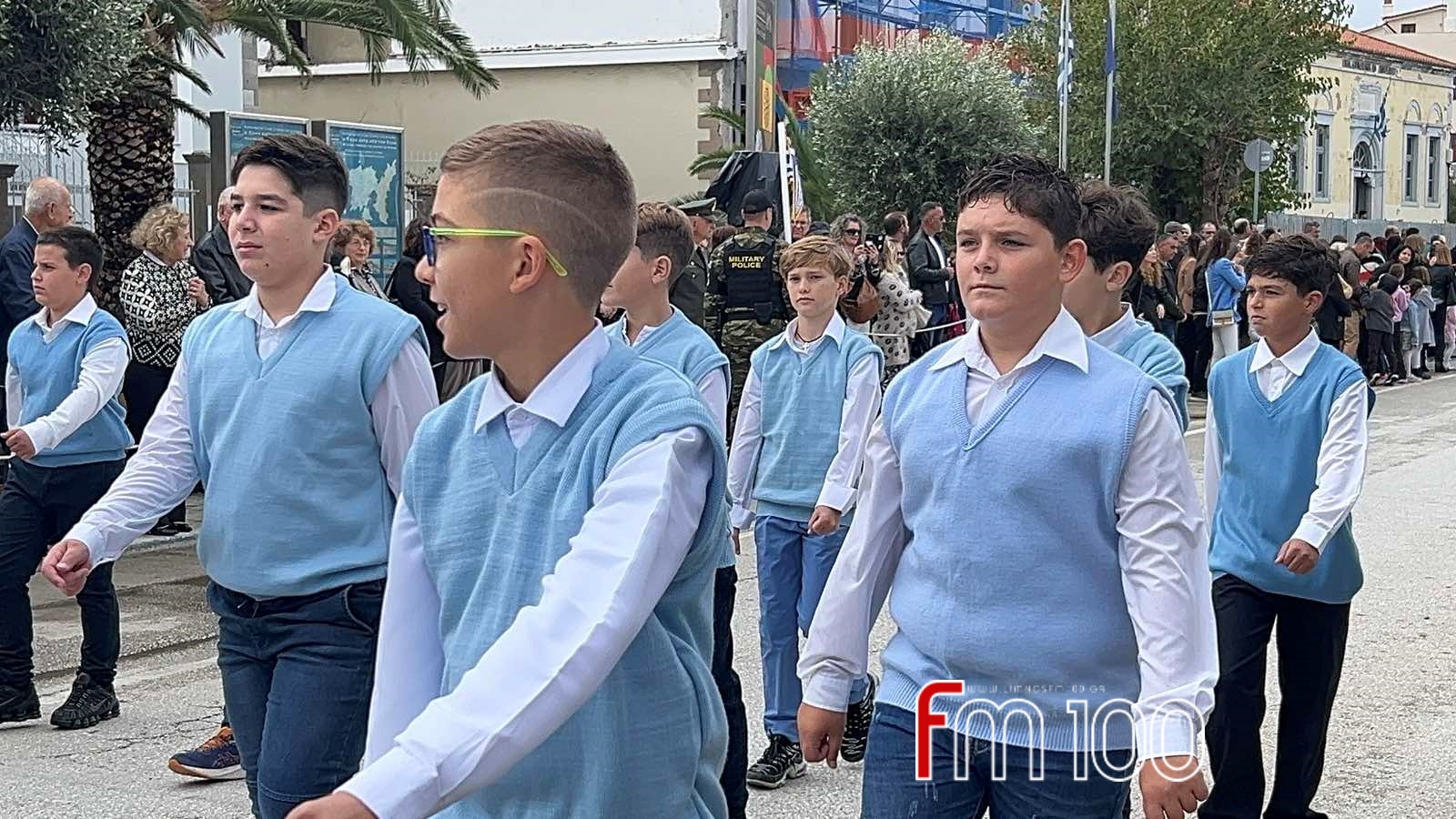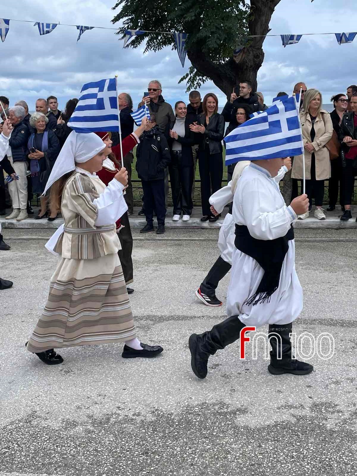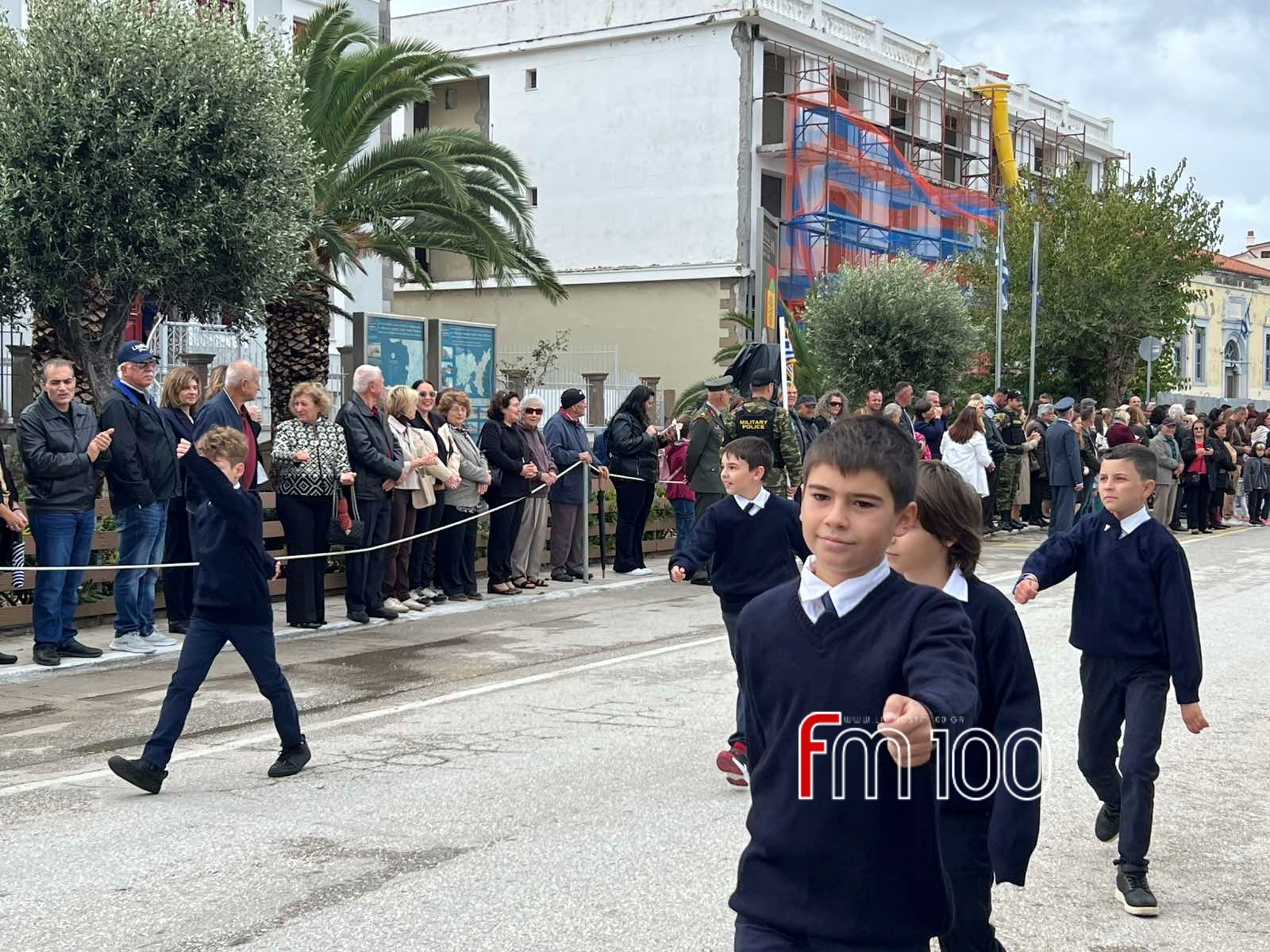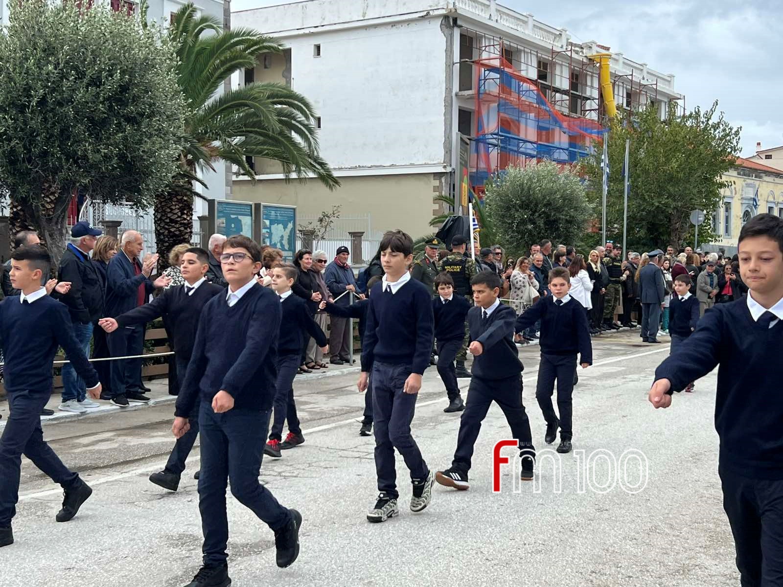 Ακολούθησε η μαθητική παρέλαση στο Ρωμαίικο Γιαλό την οποία παρακολούθησαν ο Πρόεδρος της Δημοκρατίας και οι επίσημοι προσκεκλημένοι. Στην παρέλαση συμμετείχαν μαθητές και μαθήτριες από τα σχολεία της πόλης, καθώς και πολιτιστικοί και αθλητικοί σύλλογοι του νησιού, προσφέροντας ένα ξεχωριστό θέαμα με παραδοσιακές φορεσιές και έντονο παλμό.