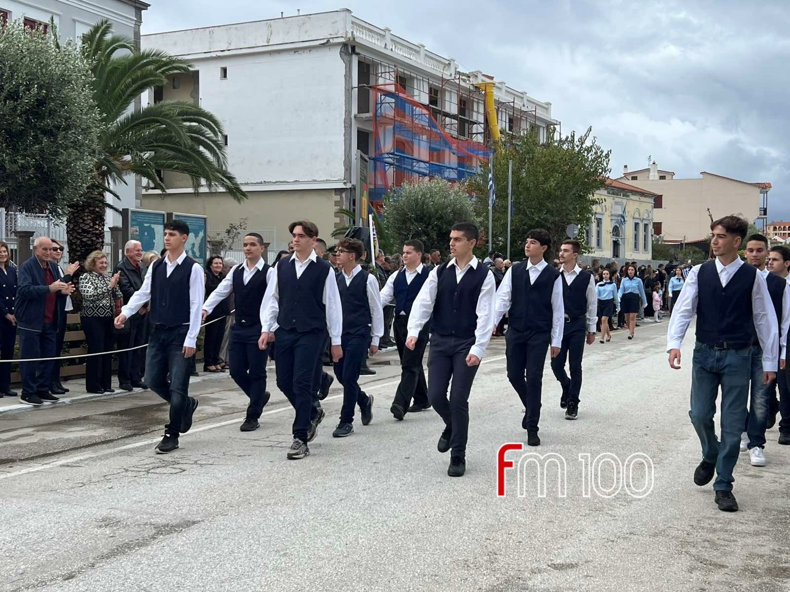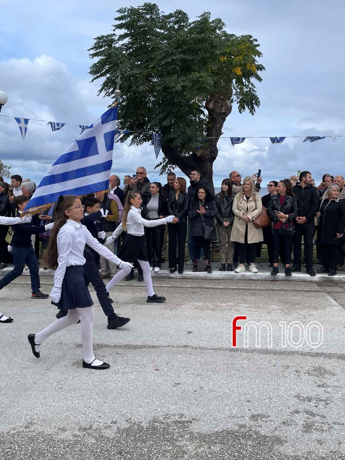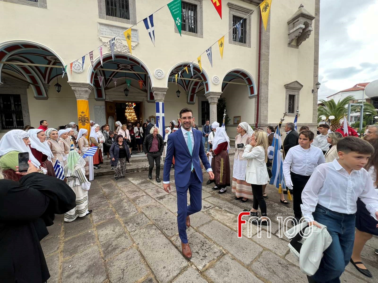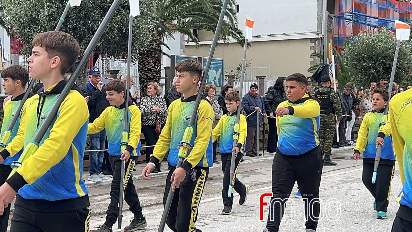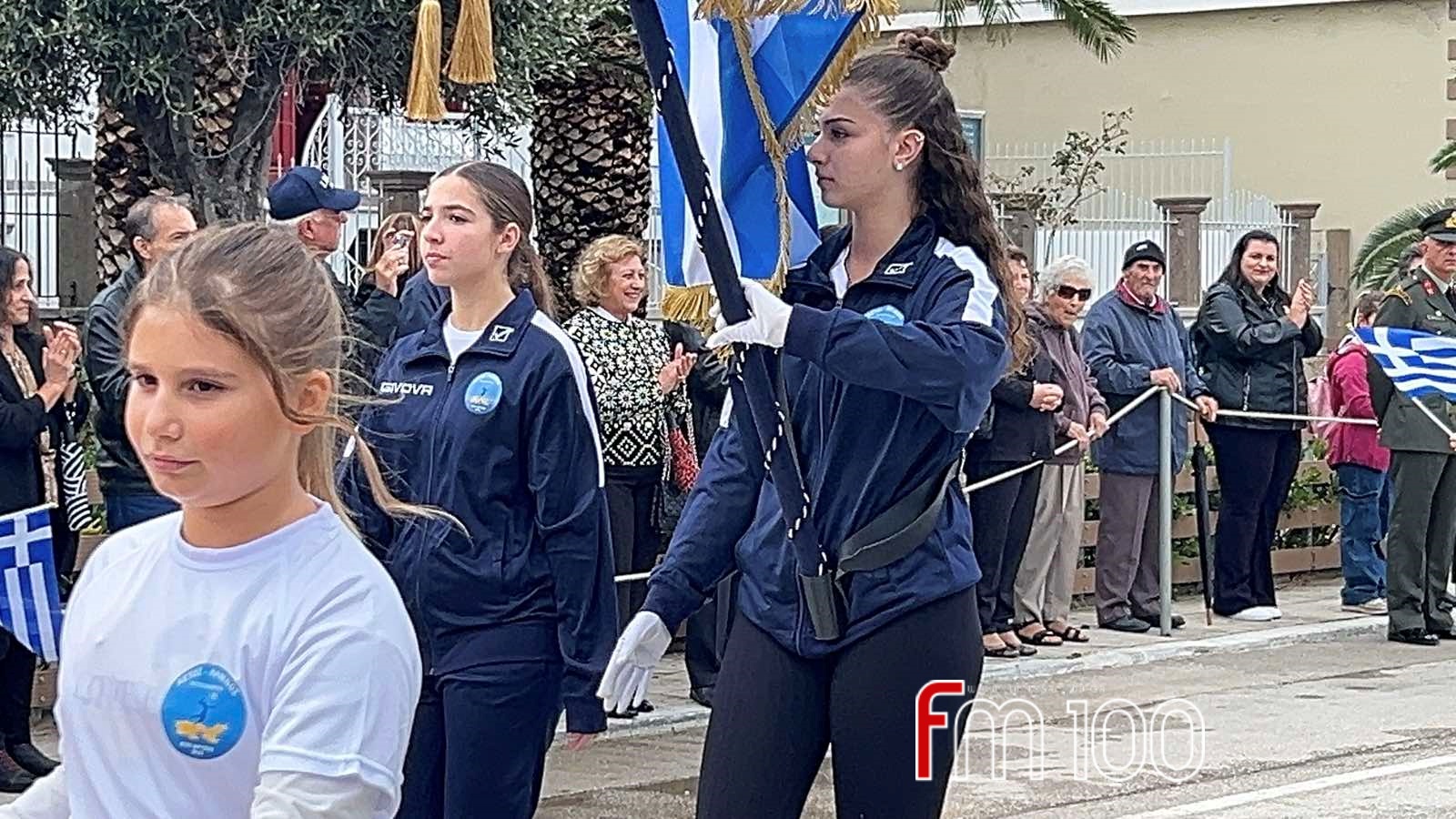 Ακολούθησε η μαθητική παρέλαση στο Ρωμαίικο Γιαλό την οποία παρακολούθησαν ο Πρόεδρος της Δημοκρατίας και οι επίσημοι προσκεκλημένοι. Στην παρέλαση συμμετείχαν μαθητές και μαθήτριες από τα σχολεία της πόλης, καθώς και πολιτιστικοί και αθλητικοί σύλλογοι του νησιού, προσφέροντας ένα ξεχωριστό θέαμα με παραδοσιακές φορεσιές και έντονο παλμό.