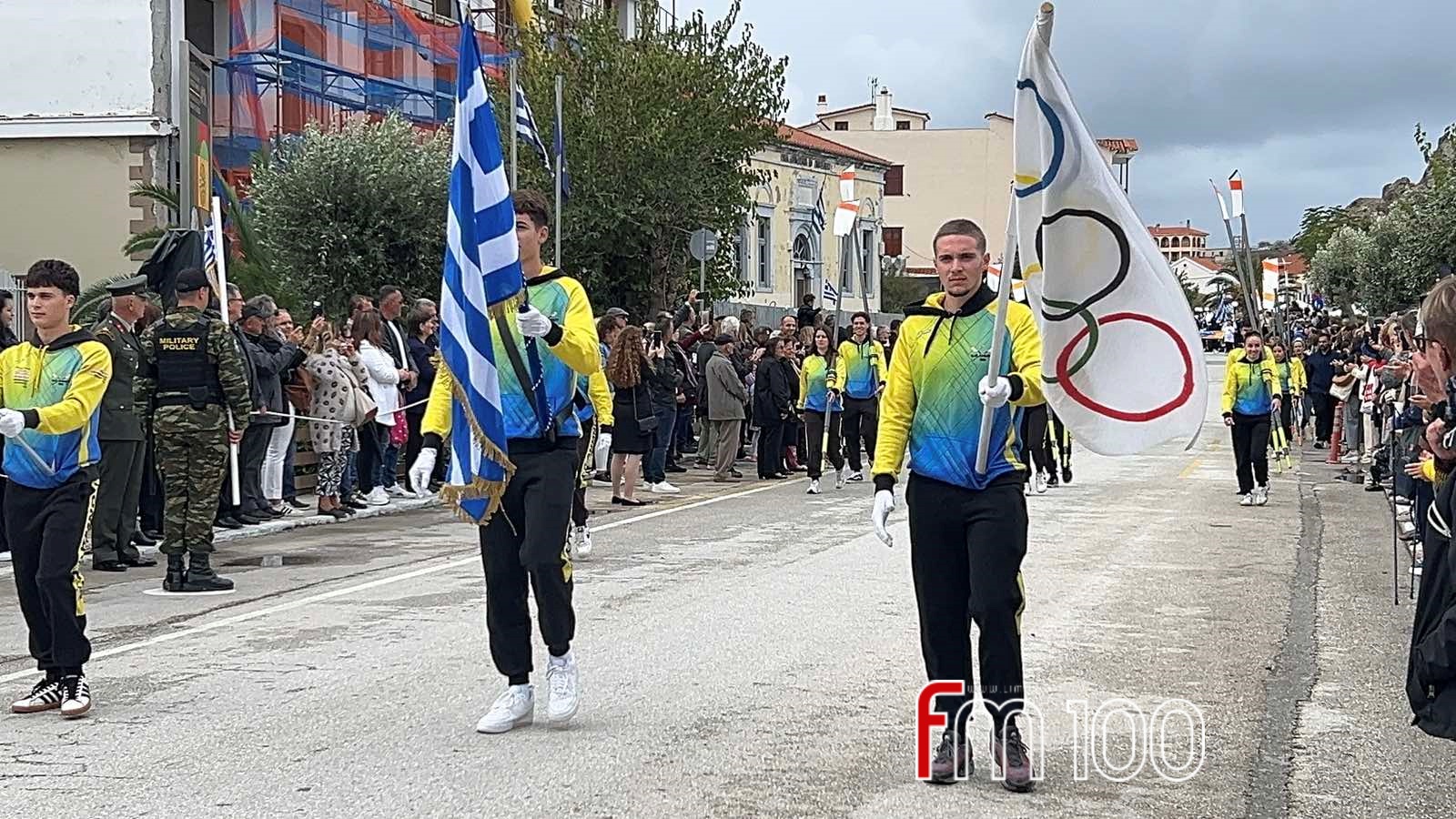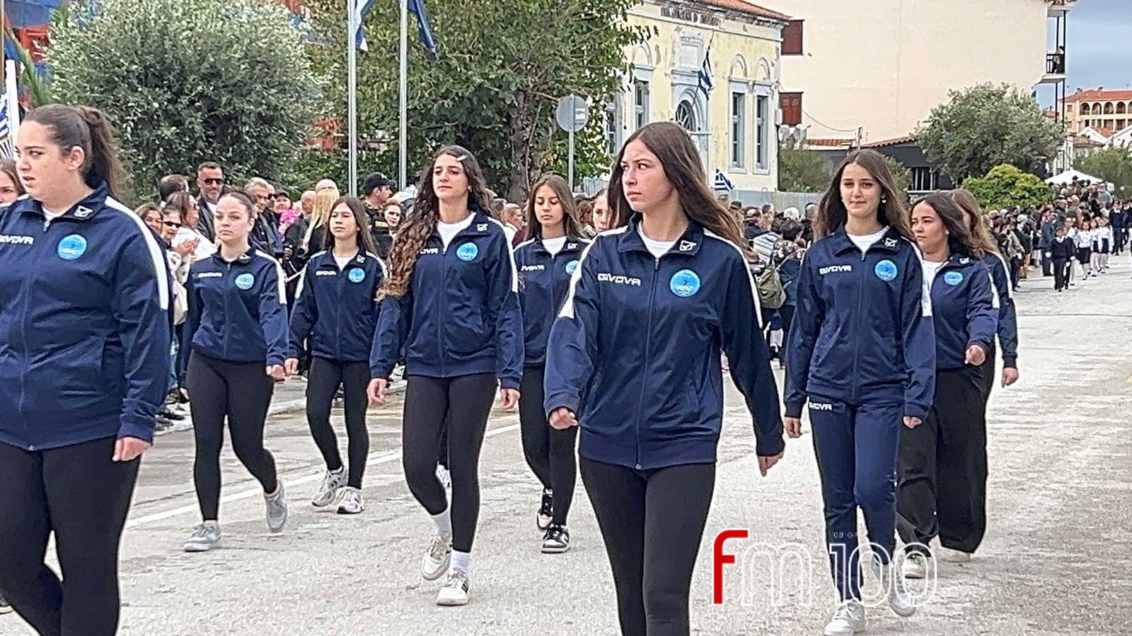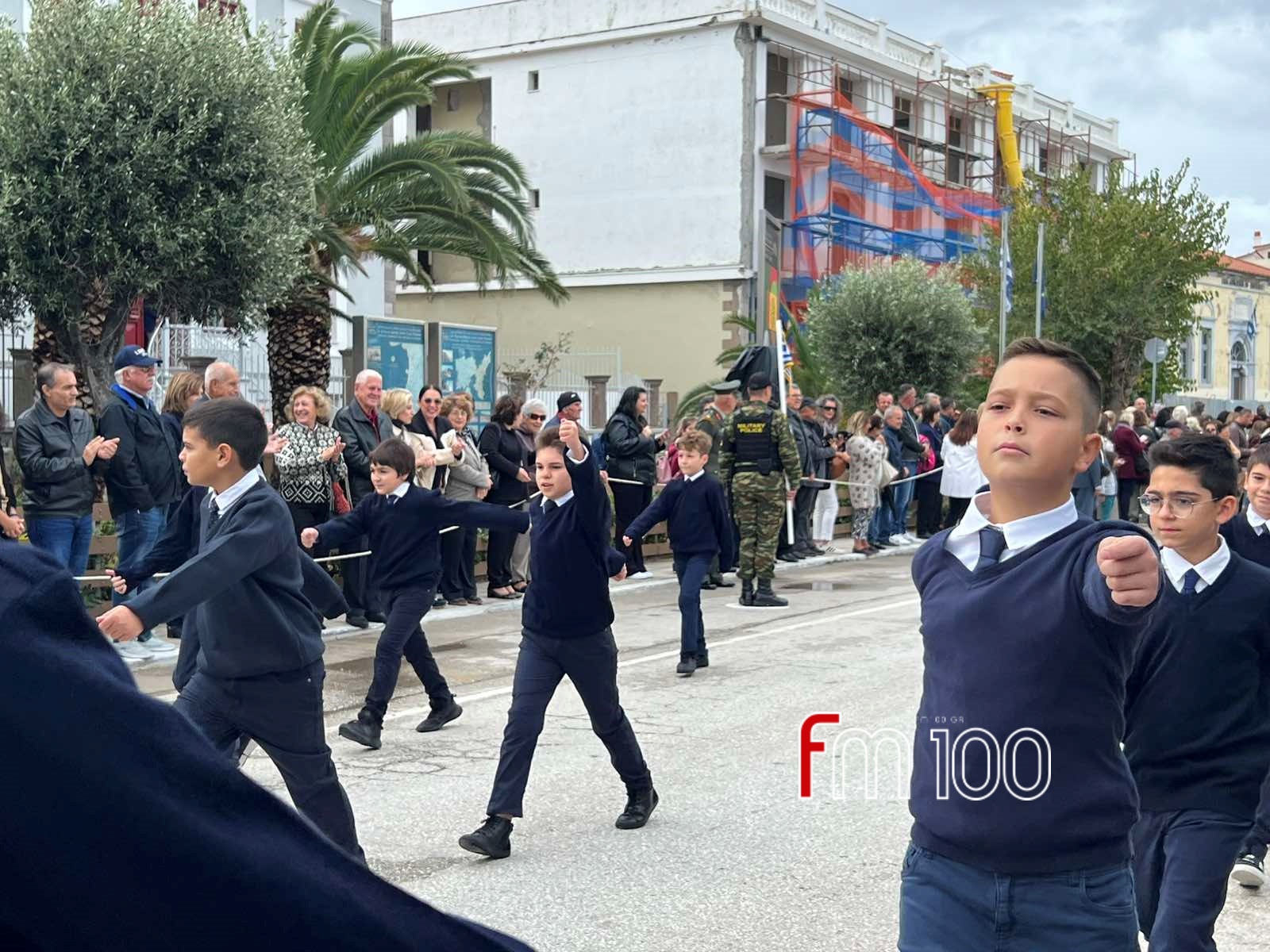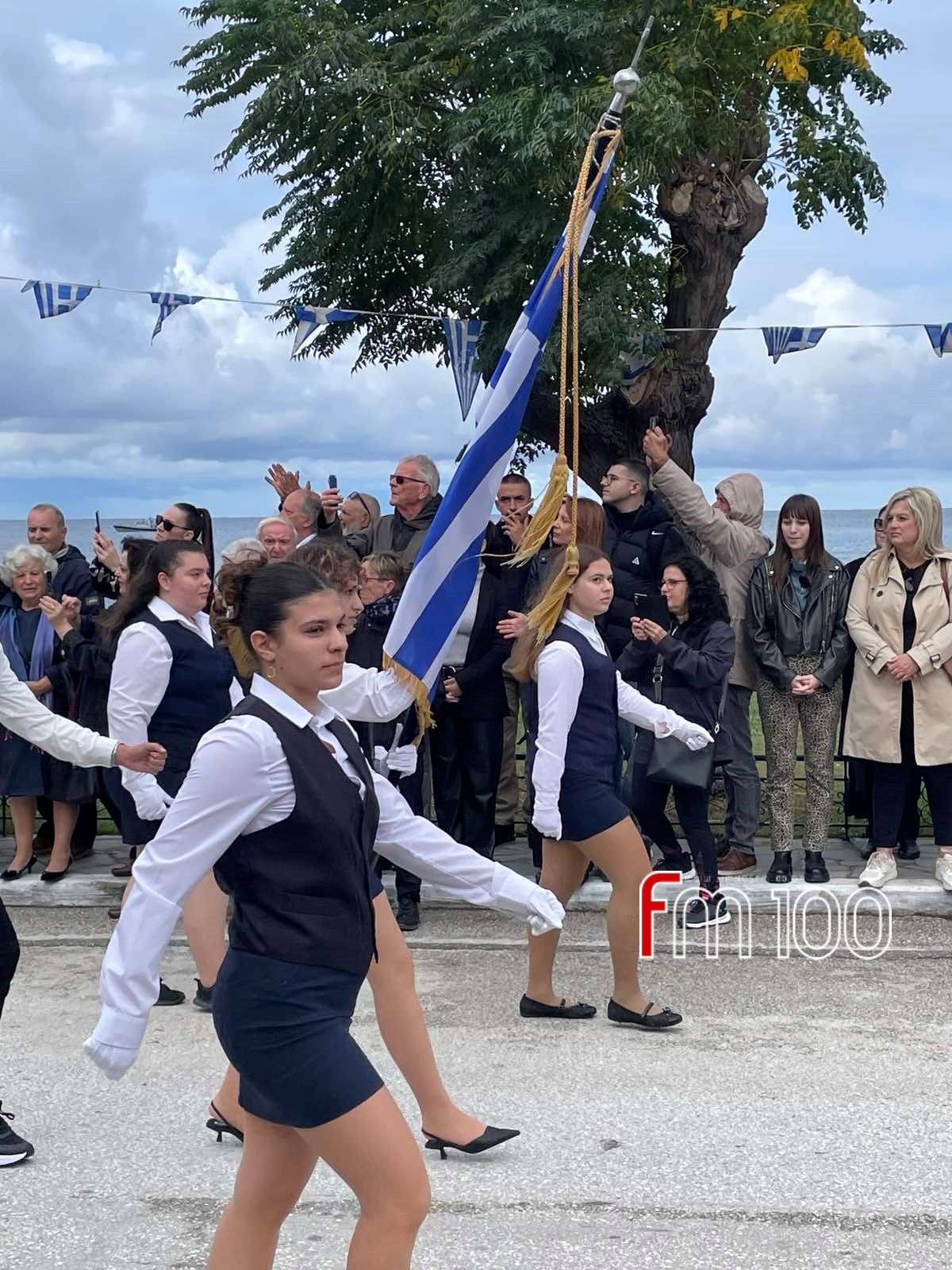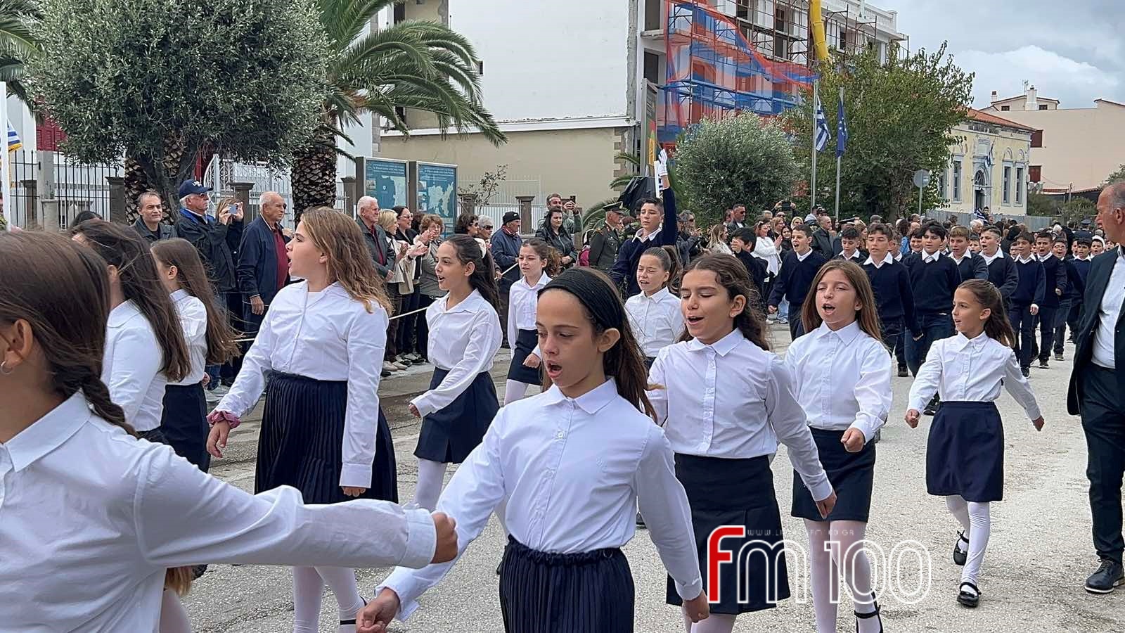 Ακολούθησε η μαθητική παρέλαση στο Ρωμαίικο Γιαλό την οποία παρακολούθησαν ο Πρόεδρος της Δημοκρατίας και οι επίσημοι προσκεκλημένοι. Στην παρέλαση συμμετείχαν μαθητές και μαθήτριες από τα σχολεία της πόλης, καθώς και πολιτιστικοί και αθλητικοί σύλλογοι του νησιού, προσφέροντας ένα ξεχωριστό θέαμα με παραδοσιακές φορεσιές και έντονο παλμό.