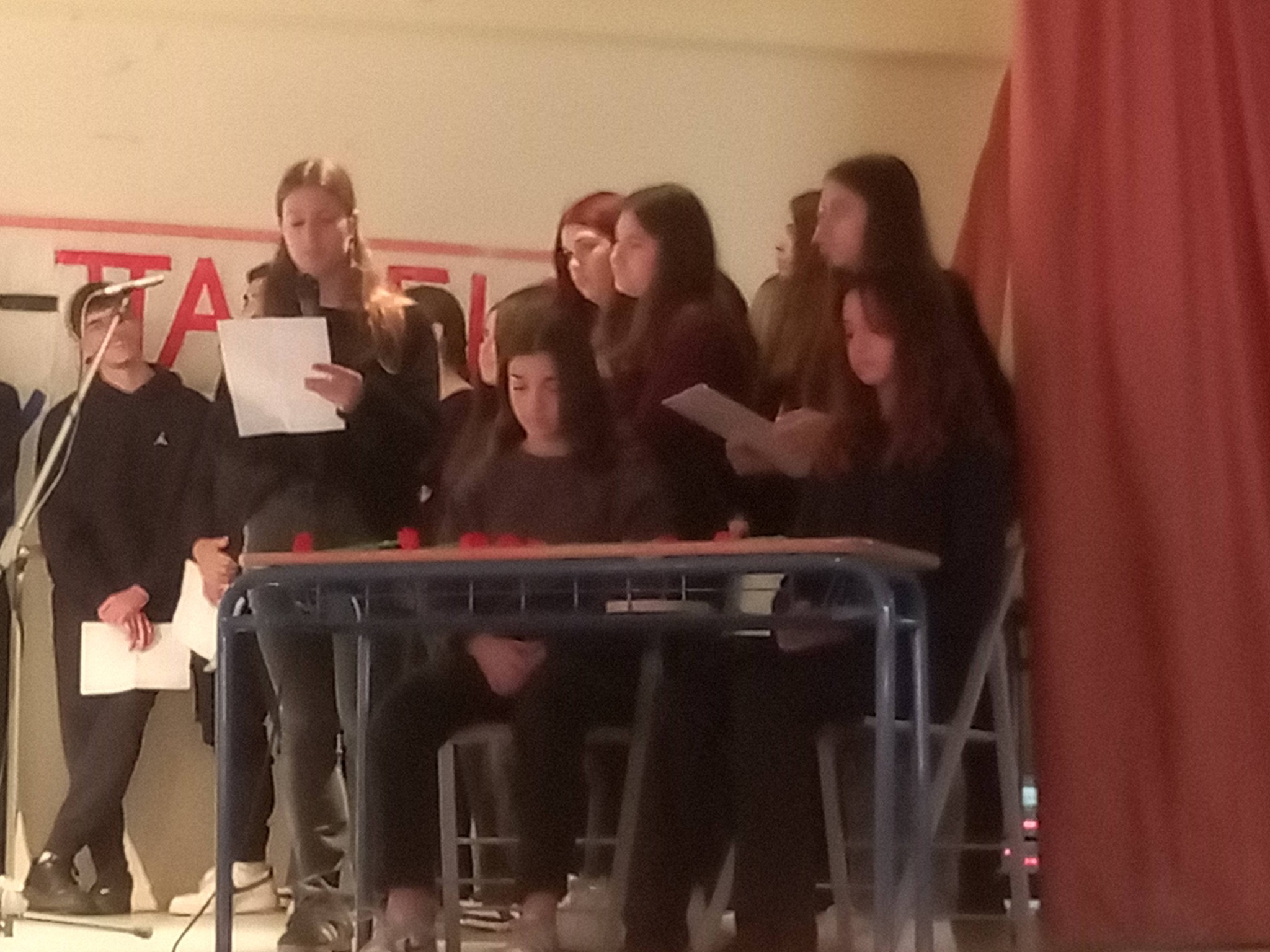 Συγχαρητήρια πολλά στους μαθητές και τις μαθητριές μας που έκαναν τα λόγια και τις μελωδίες να αποκτήσουν ψυχή. Συγχαρητήρια πολλά στις εκπαιδευτικούς μας κ. Πάρτσια Ζωή και κ. Αζά Ελένη για την εμπνευσμένη διοργάνωση. Θερμές ευχαριστίες στους γονείς που βρέθηκαν κοντά μας και βίωσαν μαζί μας τη συγκίνηση.