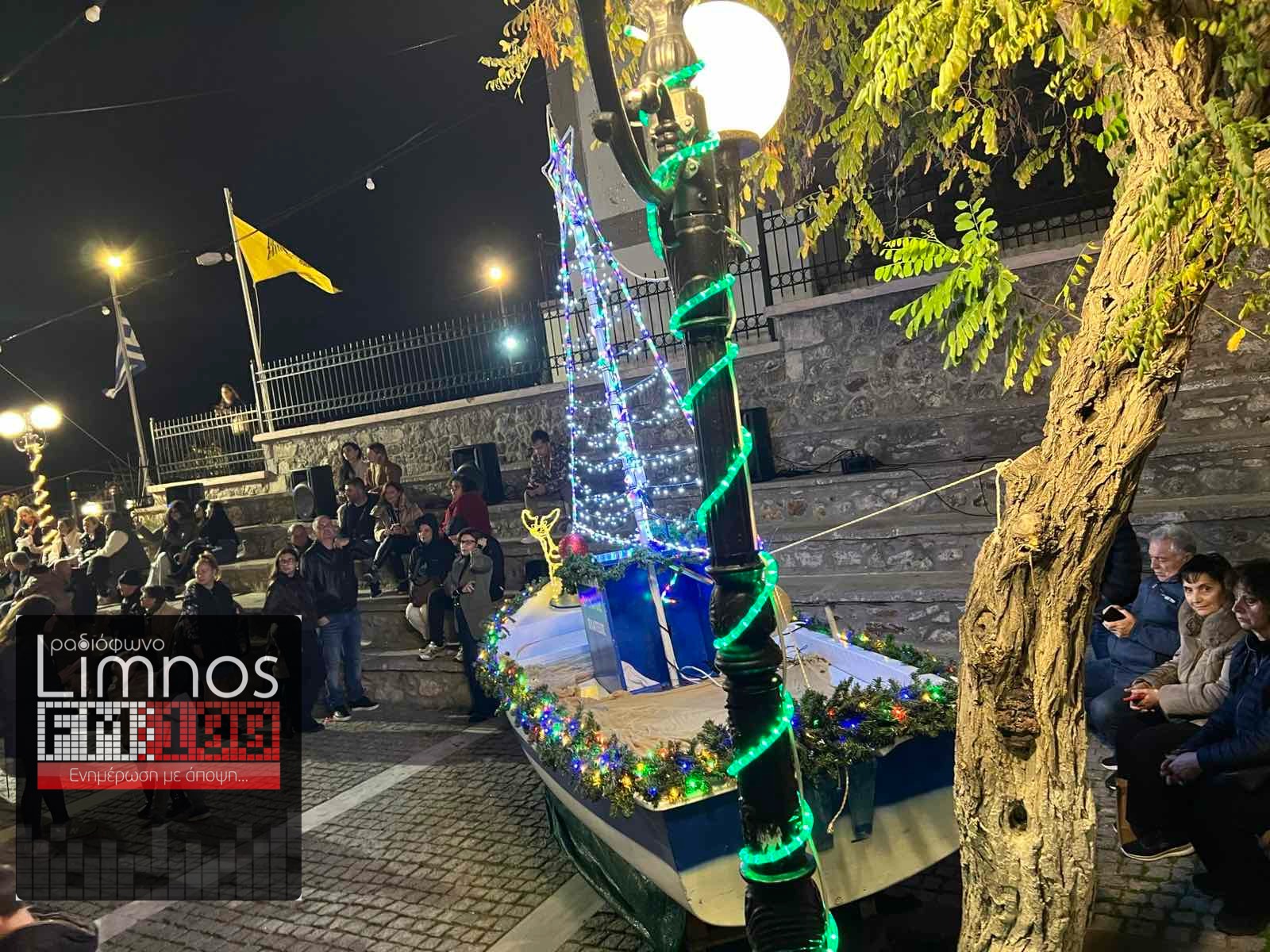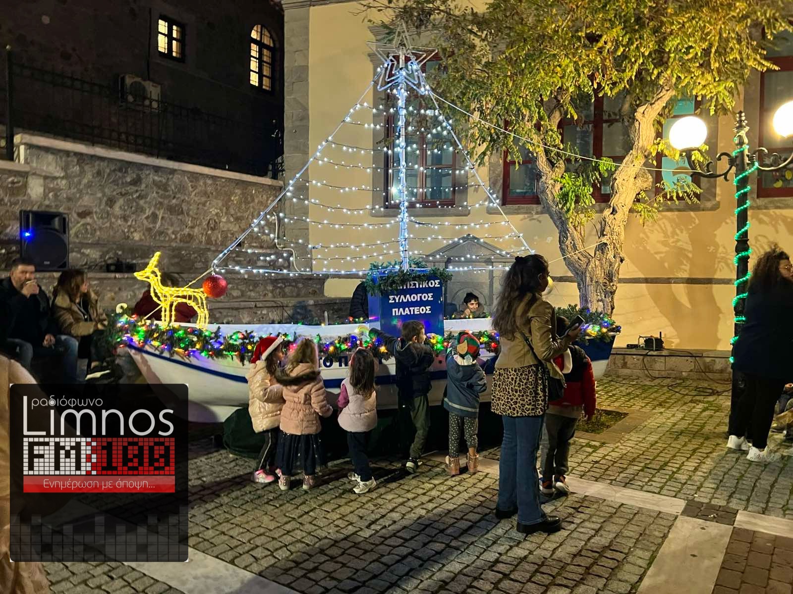 Μικροί και μεγάλοι μαζεύτηκαν γύρω από τη στολισμένη βάρκα, περιμένοντας τη στιγμή που θα φωτιζόταν και θα σήμαινε την επίσημη έναρξη της πιο όμορφης εποχής του χρόνου. Με το που άναψαν τα λαμπάκια, ένα αυθόρμητο χαμόγελο μαζί με το χειροκρότημα απλώθηκαν στην πλατεία!