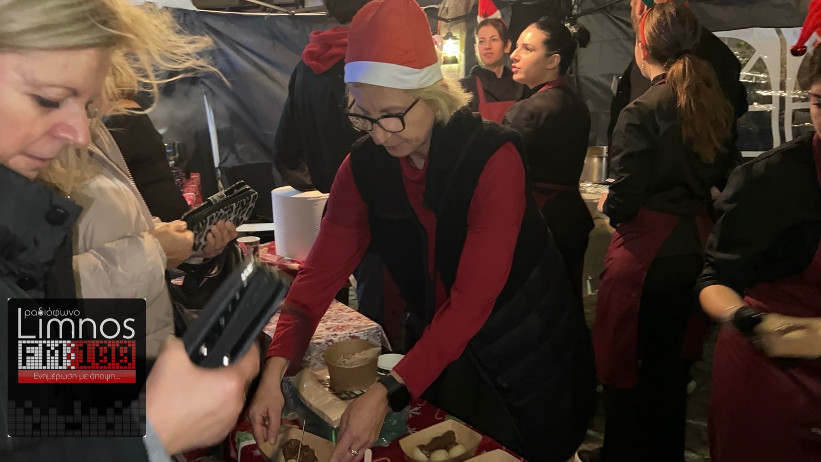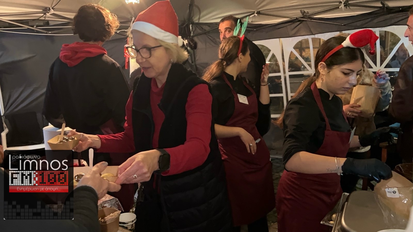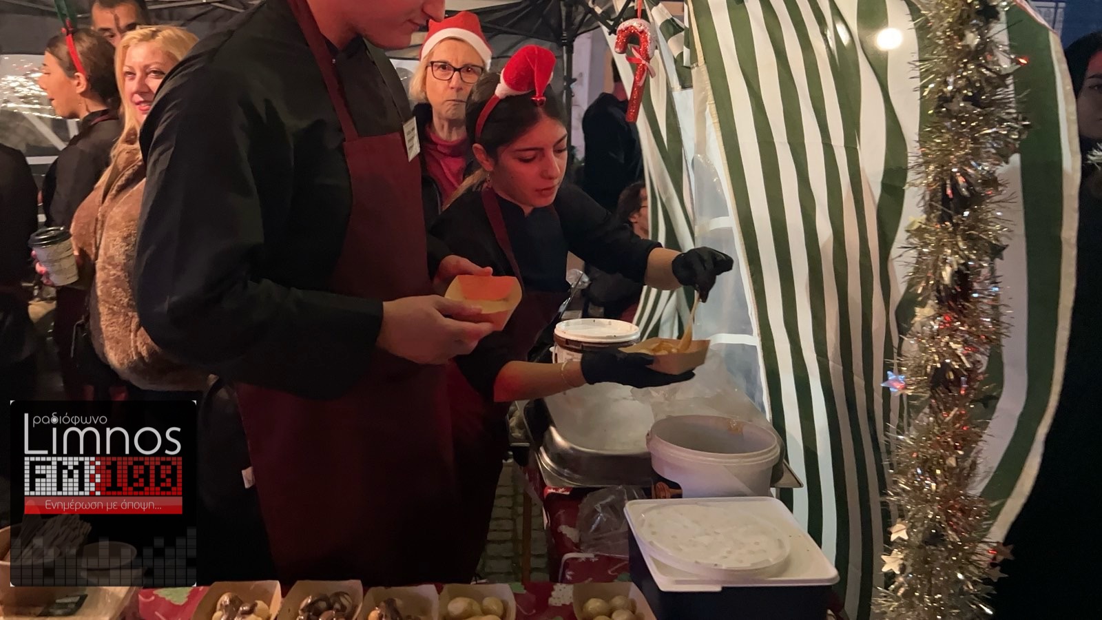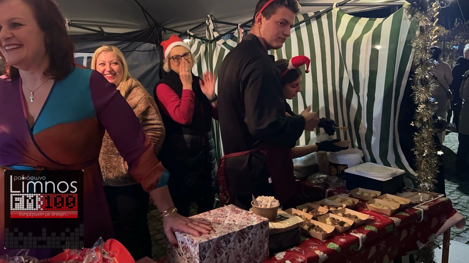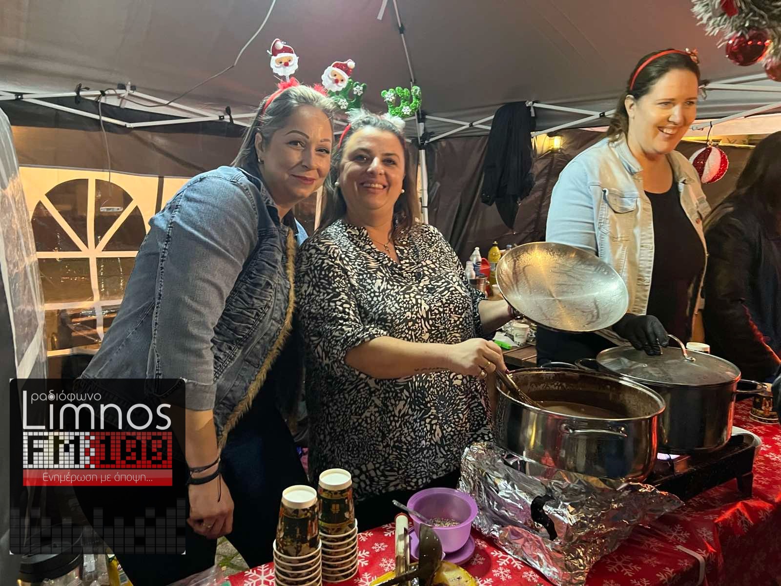 Τα σουβλάκια, τα hot dog, το ζεστό κρασί και τα γλυκά έφτιαξαν μια ατμόσφαιρα γιορτινή στην οποία πρόσθεσε ζωντάνια η συμμετοχή της ΣΑΕΚ Λήμνου!