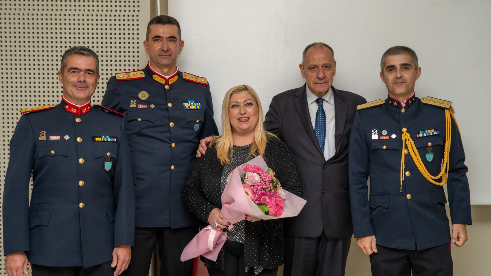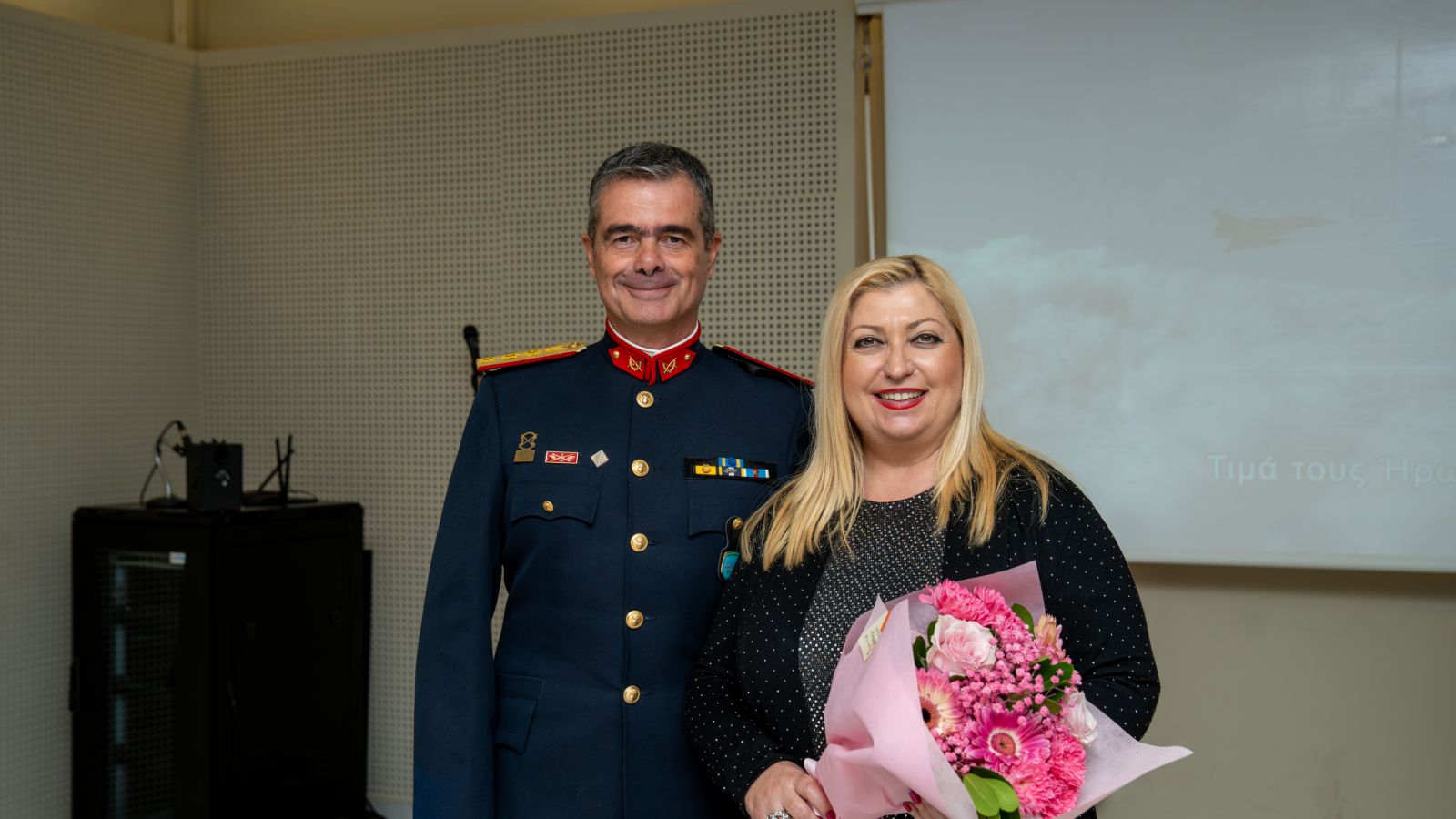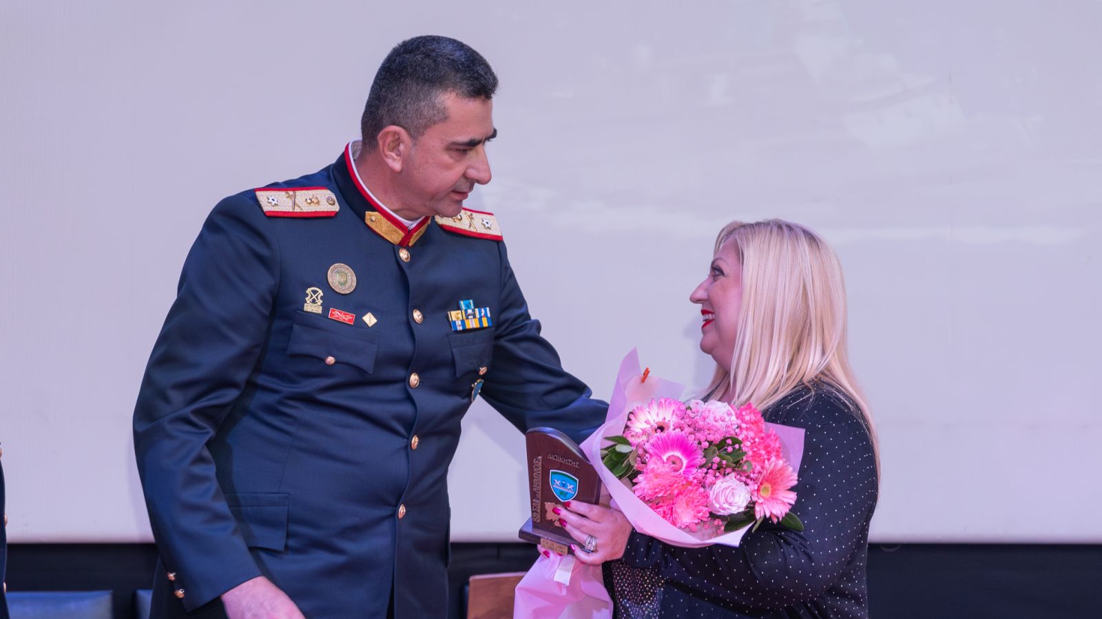 Κατά την τελετή, ο Ταξίαρχος της 88 ΣΔΙ Λήμνου κ. Πασχάλης Φιλούσης προσέφερε στην κα Λυγδά μια υπέροχη ανθοδέσμη, εκφράζοντας τις θερμότερες ευχαριστίες του για την άριστη συνεργασία, την άμεση ανταπόκριση της Σχολής και τη διάθεση προσφοράς που επιδεικνύει η Διευθύντρια σε κάθε κοινή δράση.