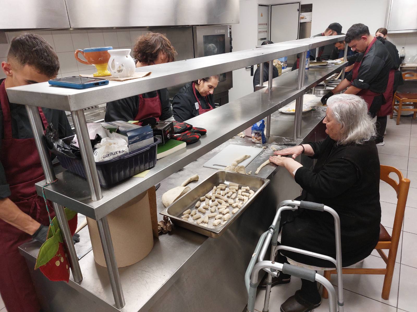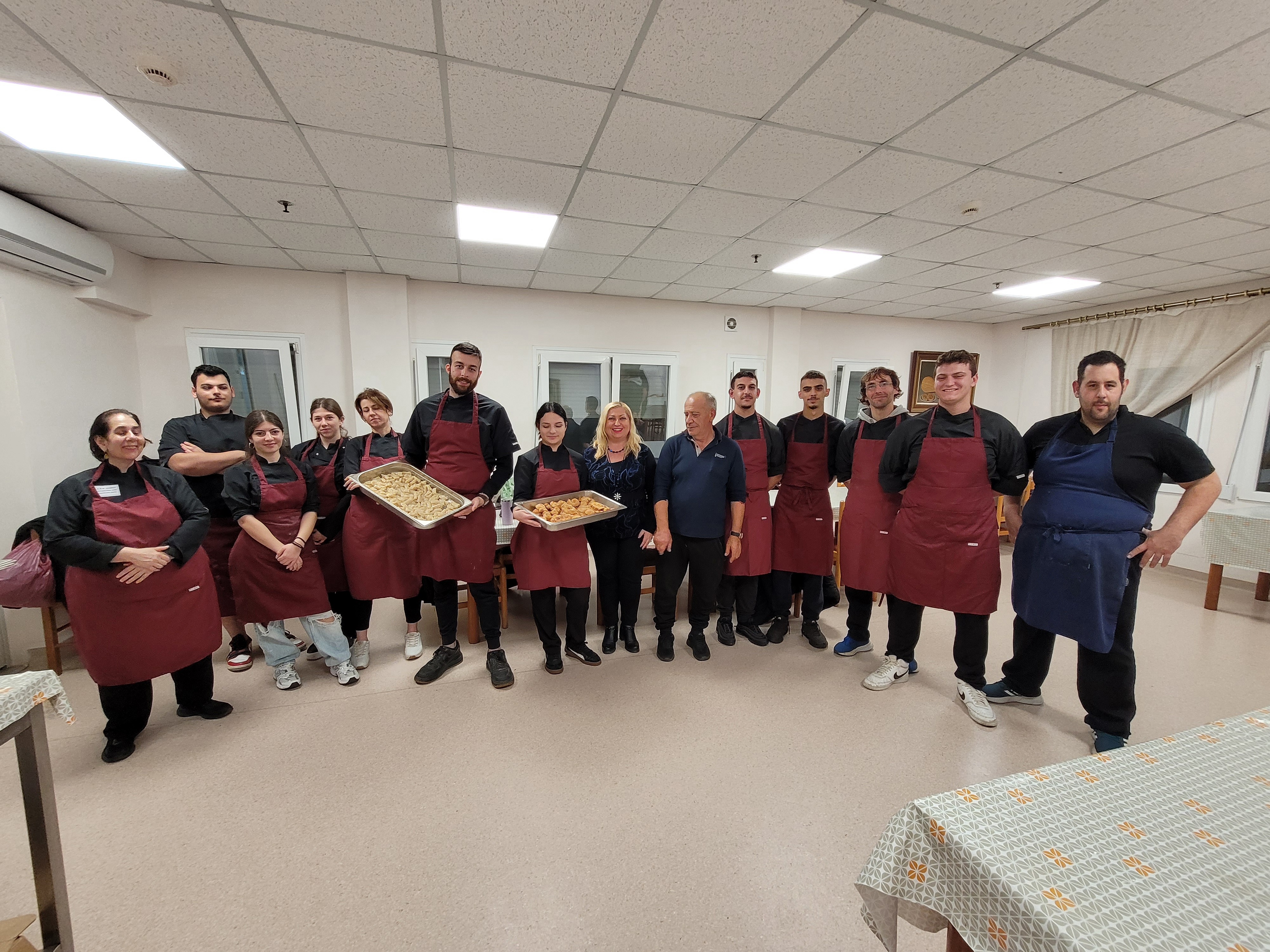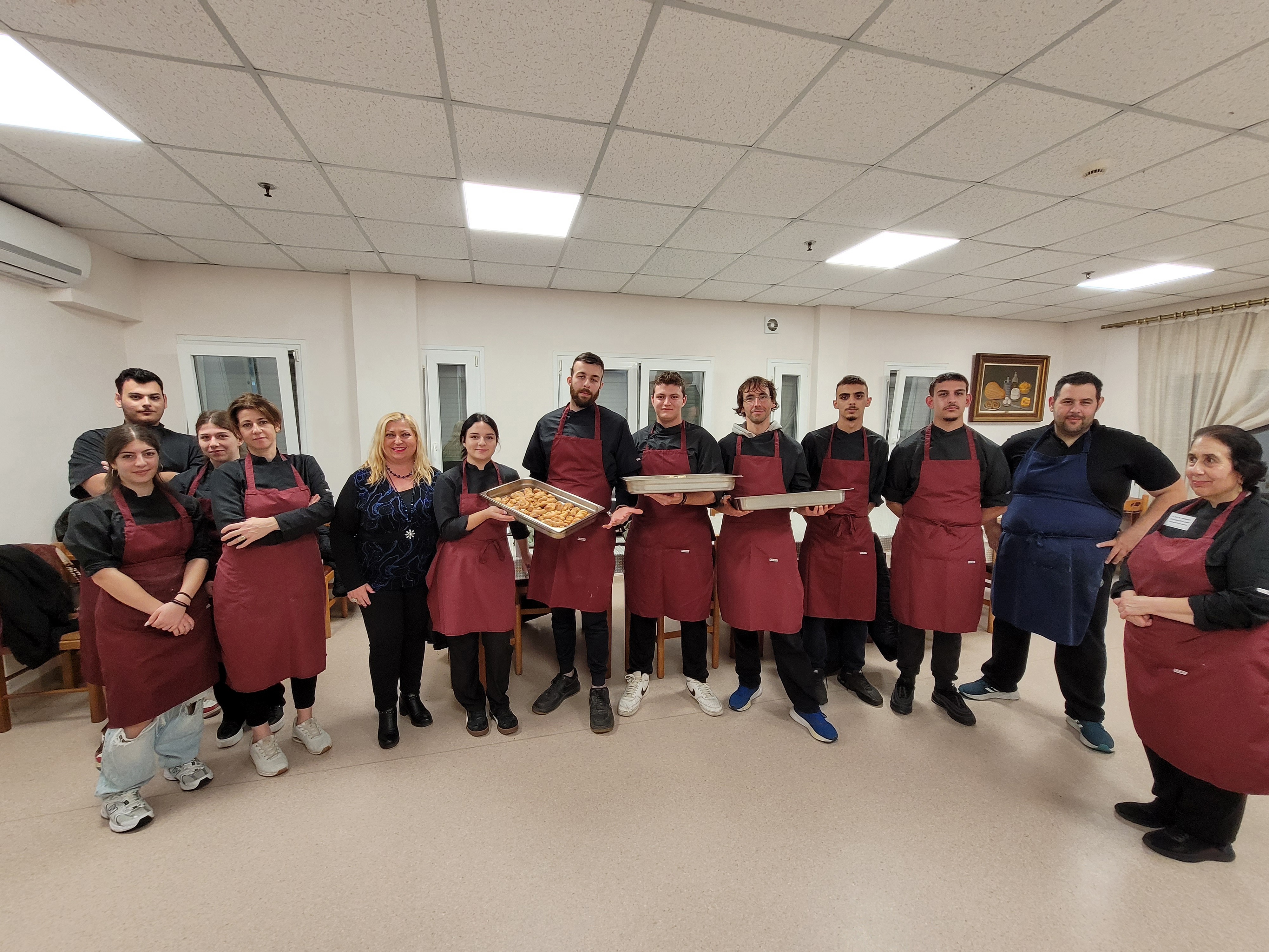 Οι σπουδαστές συνεργάστηκαν με το προσωπικό του Γηροκομείου, αλλά και με αρκετούς από τους ίδιους τους ηλικιωμένους που συμμετείχαν με χαρά στη διαδικασία. Η συγκίνηση ήταν εμφανής, καθώς η συντροφιά και οι παραδοσιακές γεύσεις τους ταξίδεψαν σε όμορφες μνήμες του παρελθόντος.
