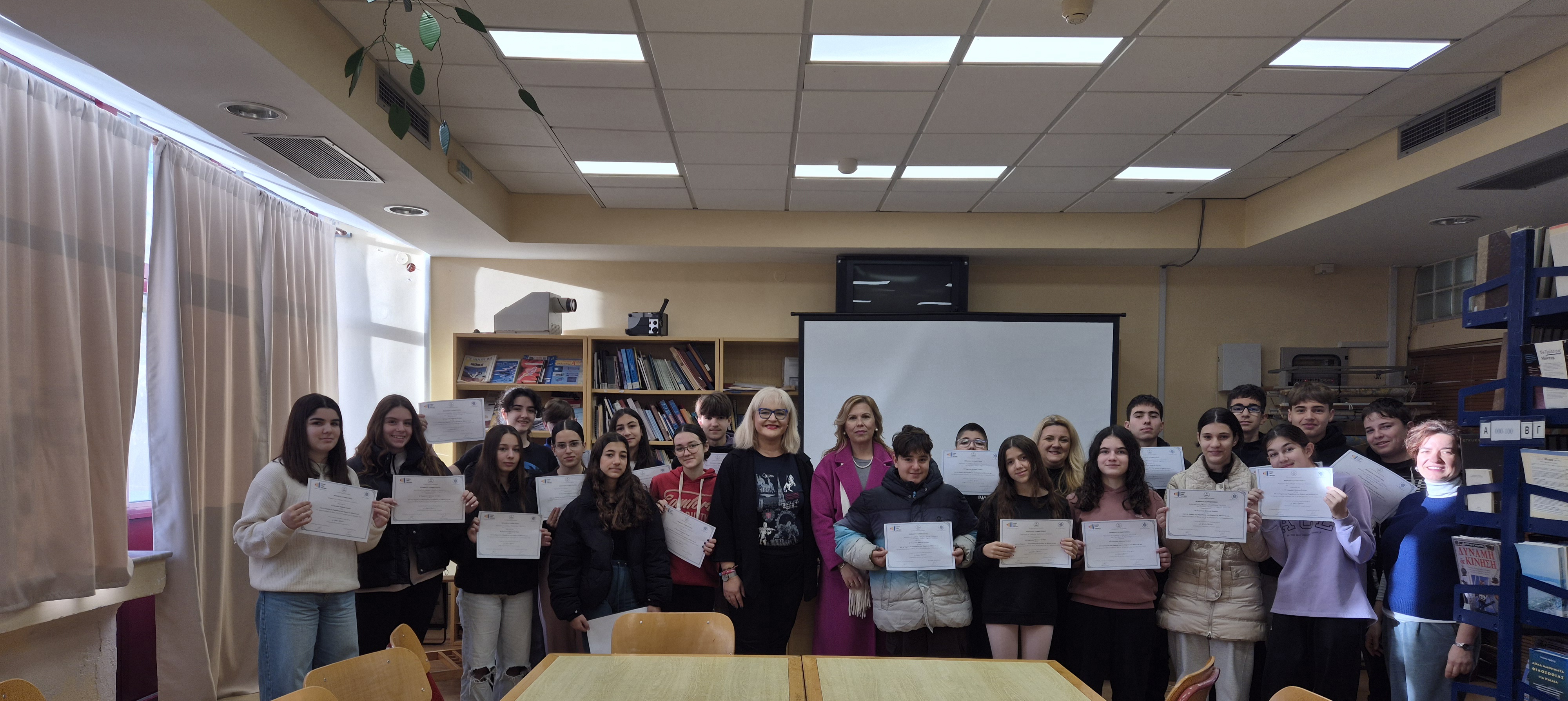 Κατά τη διάρκεια της επίσκεψης, η Δήμαρχος απένειμε τα πιστοποιητικά συμμετοχής στους μαθητές και συνομίλησε μαζί τους για την εμπειρία και τα συμπεράσματά τους από το συνέδριο. Παράλληλα, είχε εκτενή συζήτηση με τους εκπαιδευτικούς που συνόδευσαν την αποστολή, αναγνωρίζοντας το έργο και την προσπάθειά τους.