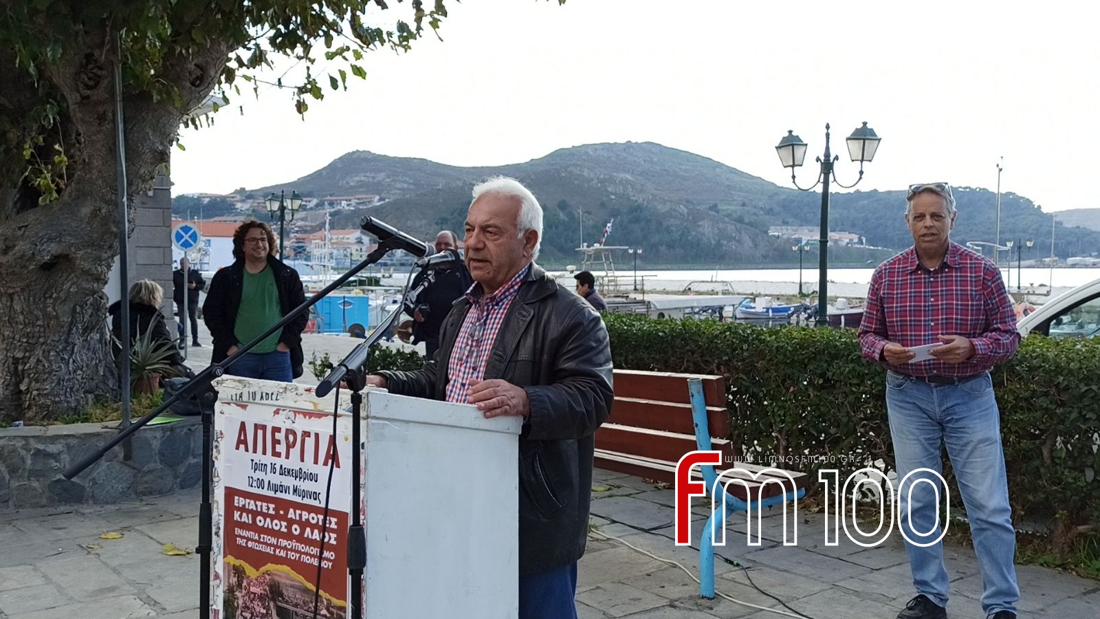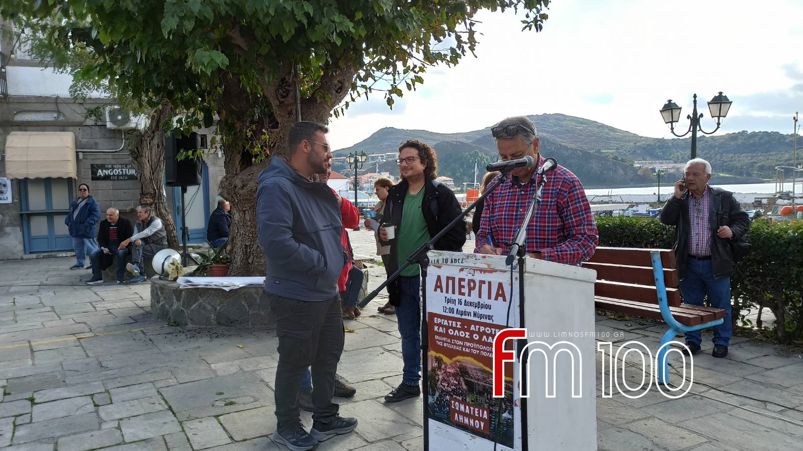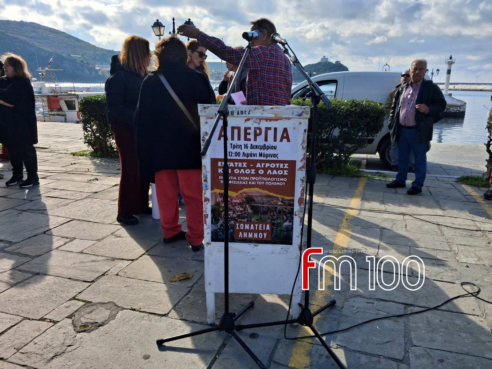Η συγκέντρωση πραγματοποιήθηκε στις 12 το μεσημέρι στο λιμάνι της Μύρινας, με τη συμμετοχή εργαζομένων, συνταξιούχων και αγροτών του νησιού. Στο πλαίσιο της κινητοποίησης τέθηκαν στο επίκεντρο αιτήματα που αφορούν αυξήσεις σε μισθούς και συντάξεις, συλλογικές συμβάσεις εργασίας, κοινωνικές παροχές, εργασιακά δικαιώματα, καθώς και μέτρα ενάντια στην ακρίβεια και τη φορολογική επιβάρυνση.