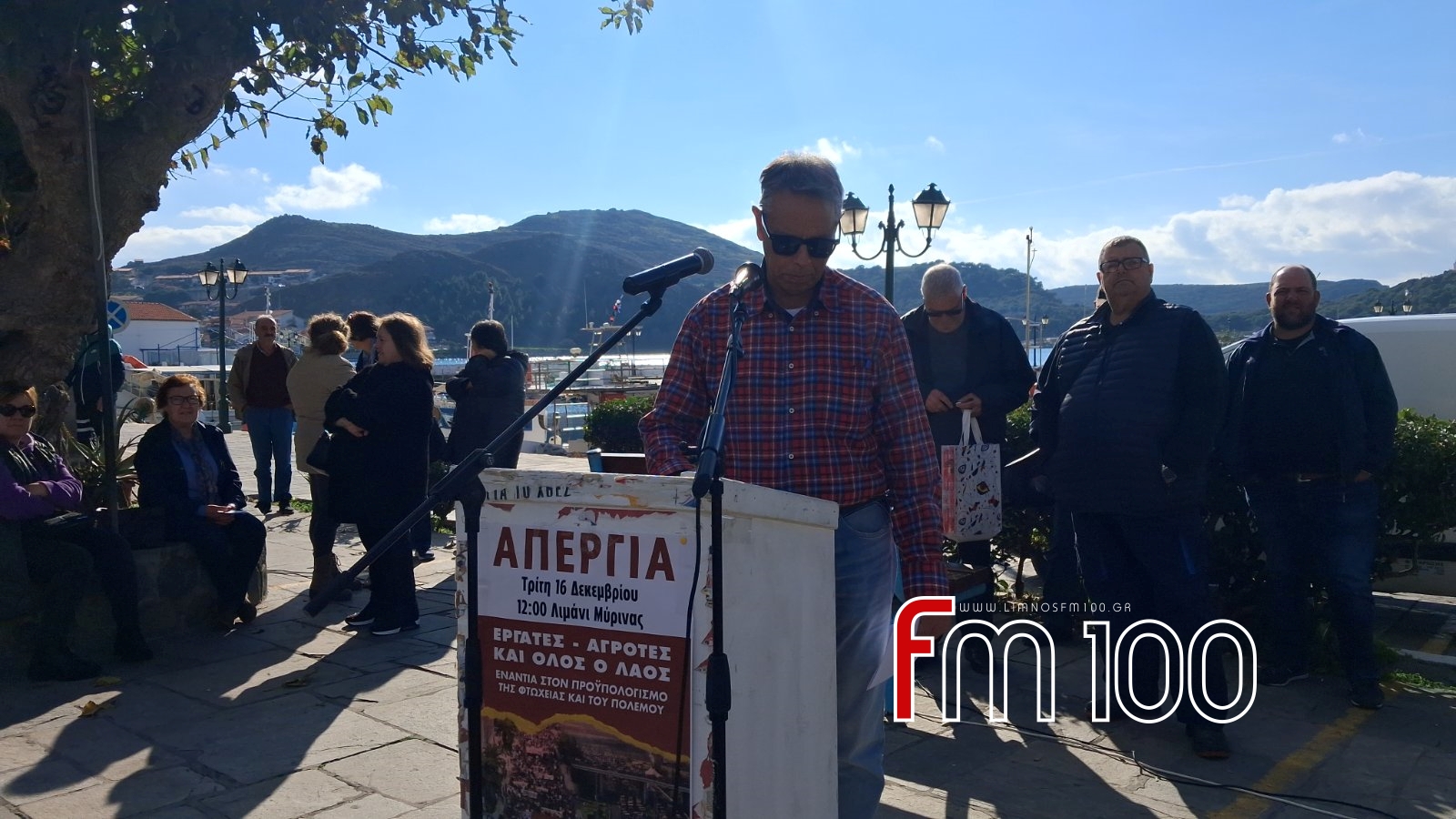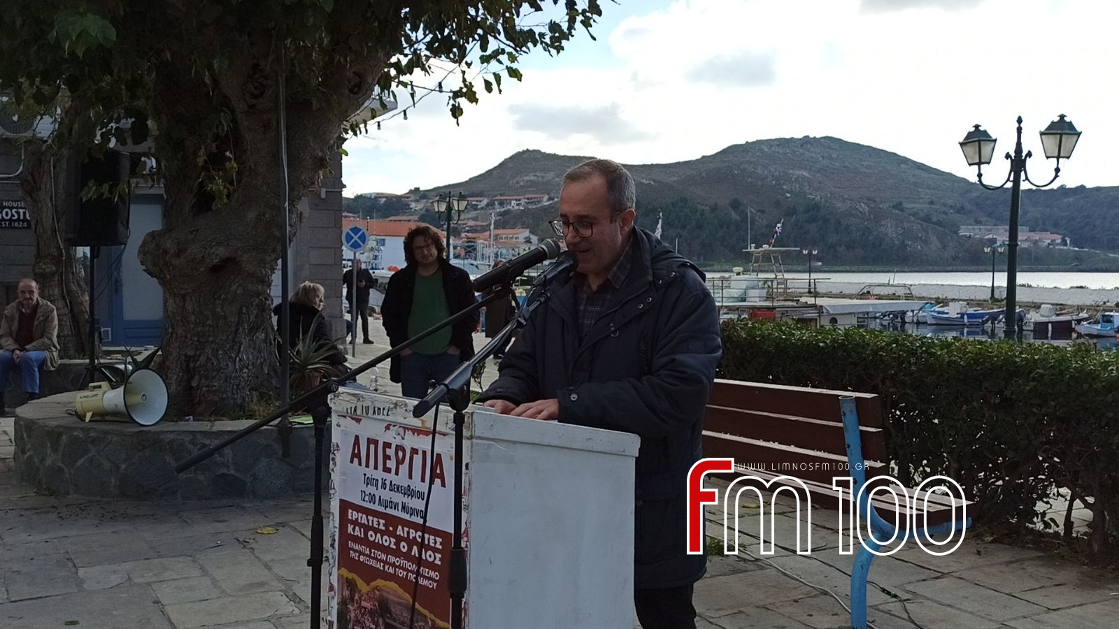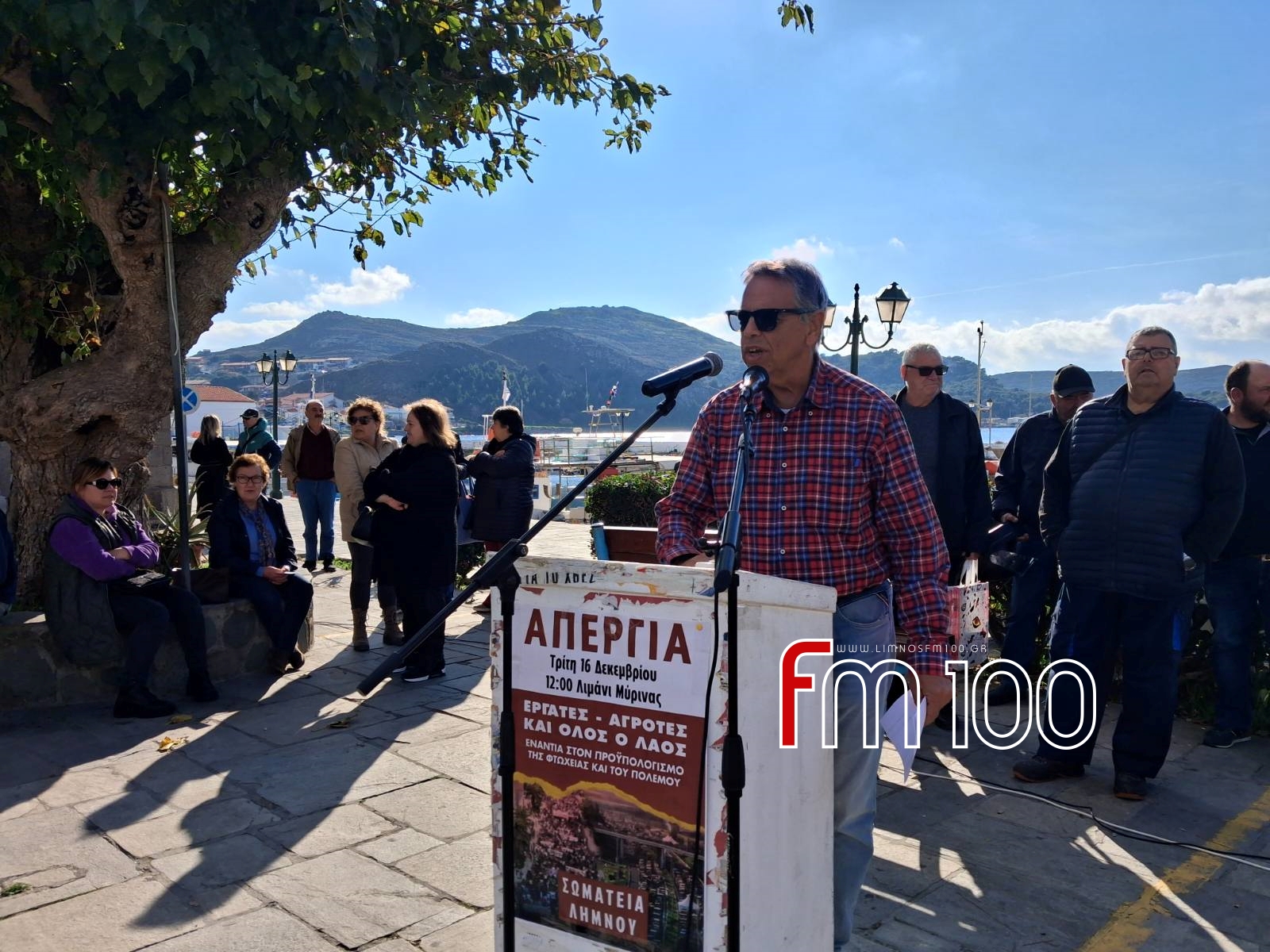 Η συγκέντρωση πραγματοποιήθηκε στις 12 το μεσημέρι στο λιμάνι της Μύρινας, με τη συμμετοχή εργαζομένων, συνταξιούχων και αγροτών του νησιού. Στο πλαίσιο της κινητοποίησης τέθηκαν στο επίκεντρο αιτήματα που αφορούν αυξήσεις σε μισθούς και συντάξεις, συλλογικές συμβάσεις εργασίας, κοινωνικές παροχές, εργασιακά δικαιώματα, καθώς και μέτρα ενάντια στην ακρίβεια και τη φορολογική επιβάρυνση.
