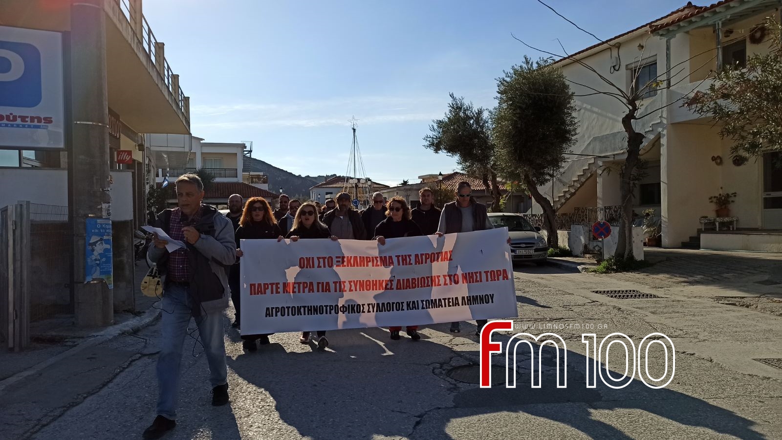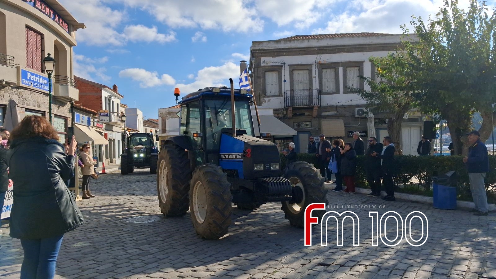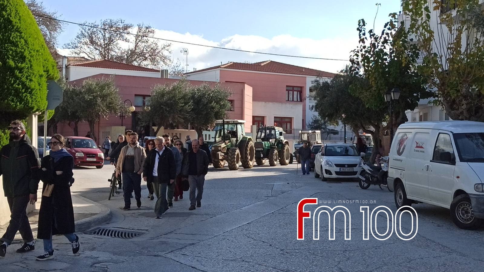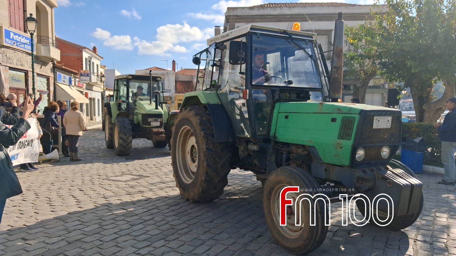 Ιδιαίτερη παρουσία είχαν οι αγροκτηνοτρόφοι της Λήμνου, οι οποίοι μετέφεραν τα τρακτέρ τους από το μπλόκο του Λιβαδοχωρίου στη Μύρινα και τα παρέταξαν μπροστά από το Δημαρχείο, εκφράζοντας τη συμπαράστασή τους στην κινητοποίηση και προβάλλοντας τα δικά τους αιτήματα.