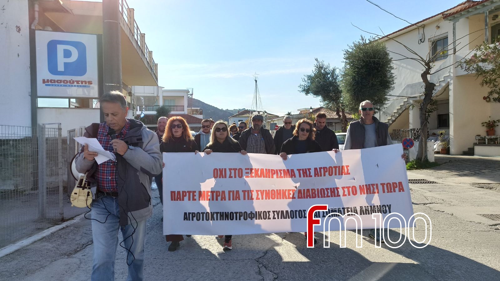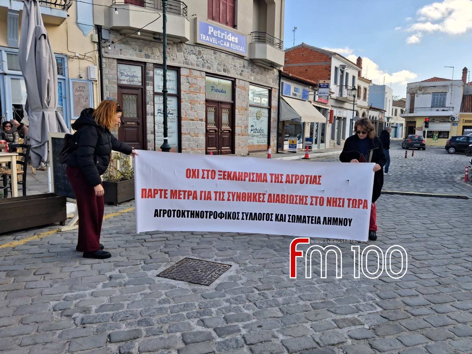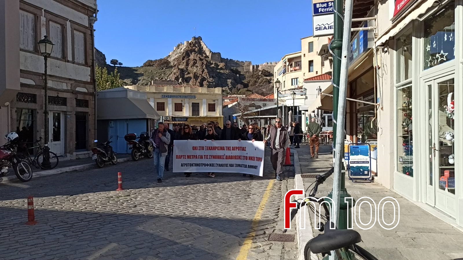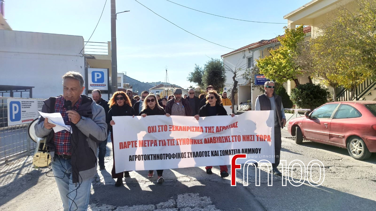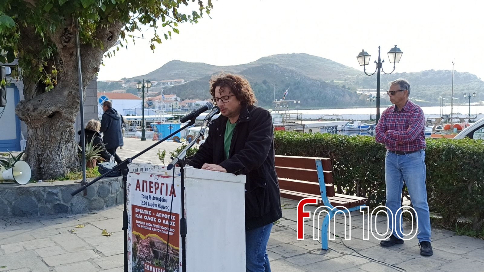 Ιδιαίτερη παρουσία είχαν οι αγροκτηνοτρόφοι της Λήμνου, οι οποίοι μετέφεραν τα τρακτέρ τους από το μπλόκο του Λιβαδοχωρίου στη Μύρινα και τα παρέταξαν μπροστά από το Δημαρχείο, εκφράζοντας τη συμπαράστασή τους στην κινητοποίηση και προβάλλοντας τα δικά τους αιτήματα.