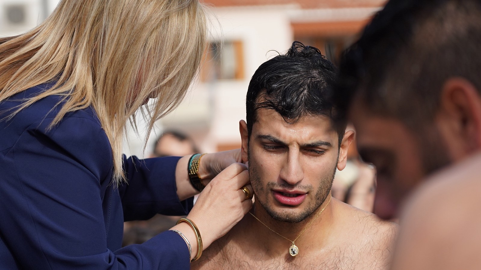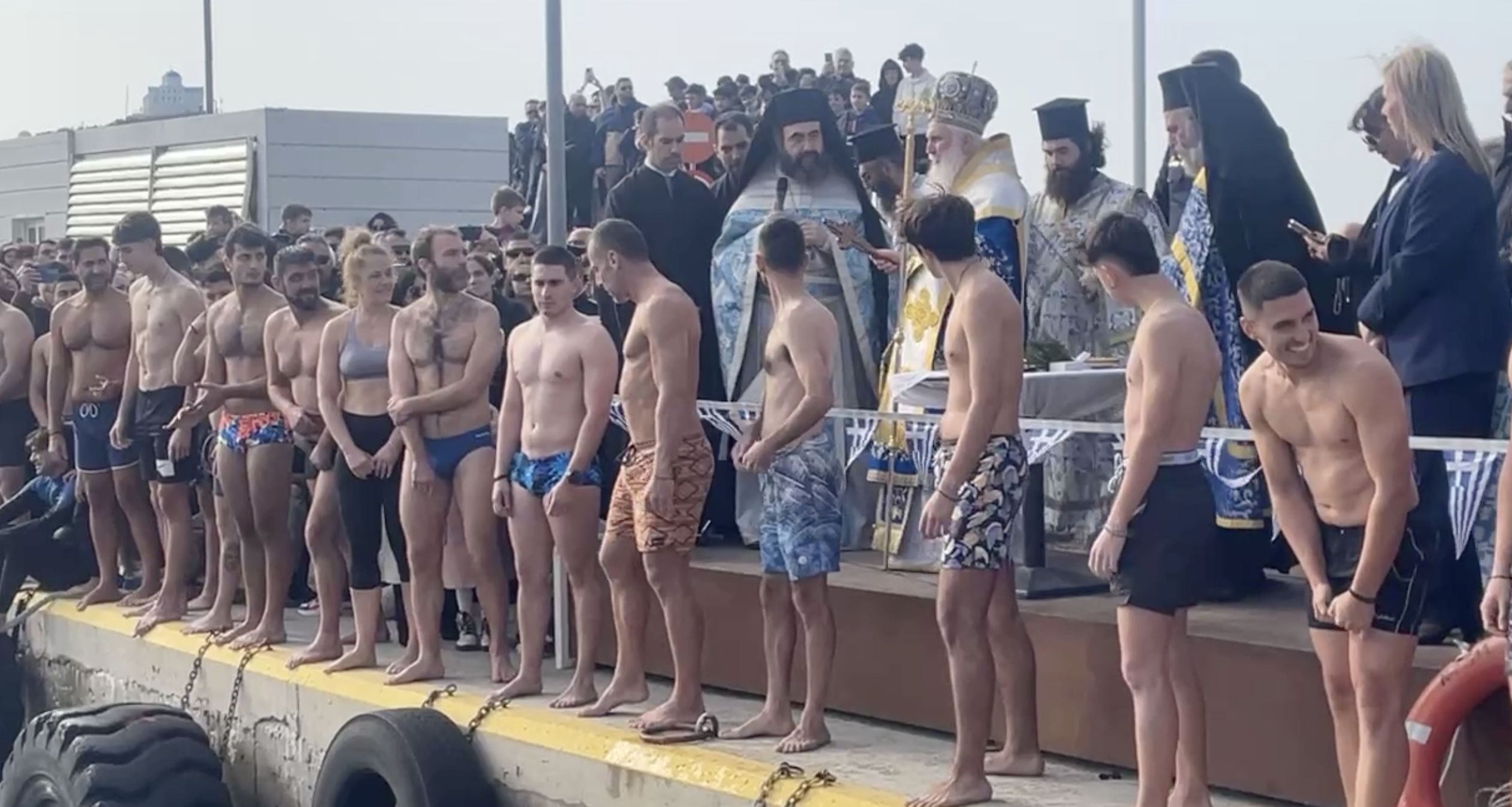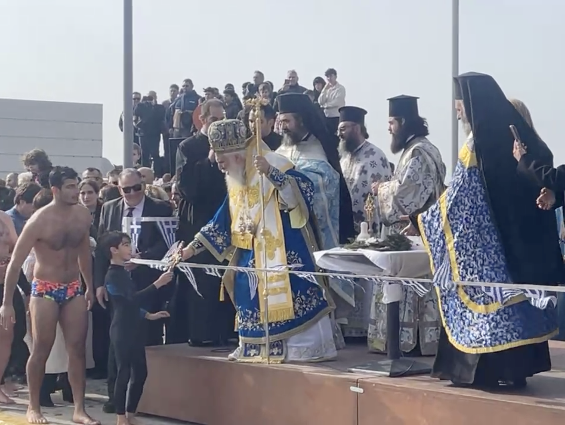 Ακολούθησε ο καθαγιασμός των υδάτων από τον Σεβασμιώτατο, με τη ρίψη του Τιμίου Σταυρού στη θάλασσα του παλαιού λιμένα Μύρινας, ενώ ανάμεσα στους πιστούς που έπεσαν στα νερά για να ανασύρουν τον Σταυρό, τηρώντας το έθιμο, ήταν και ο Γενικός Γραμματέας κ. Μοσκώφ.