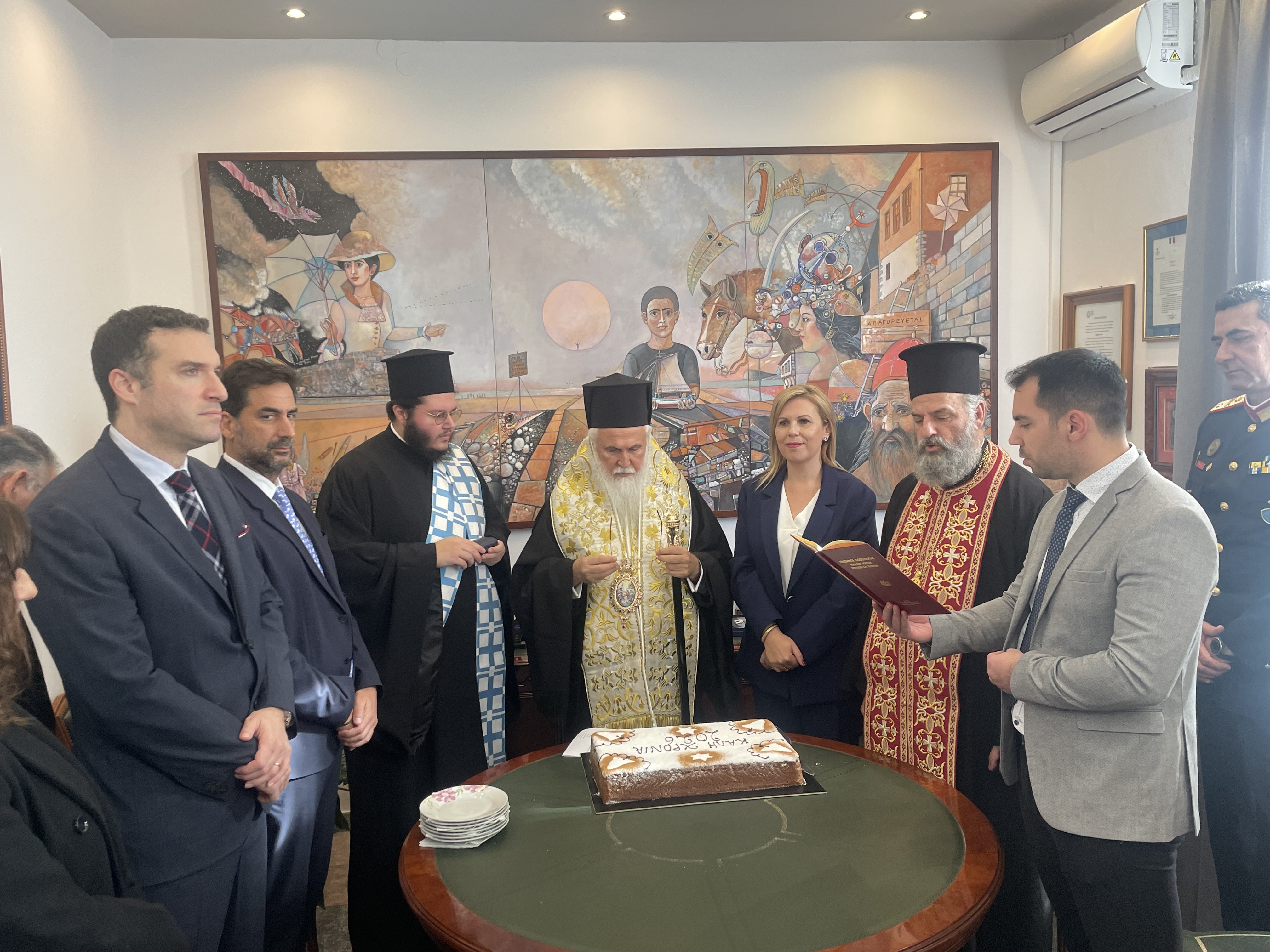 Οι εορτασμοί ολοκληρώθηκαν με την κοπή της πρωτοχρονιάτικης πίτας στο Δημαρχείο. Ο Σεβασμιώτατος Μητροπολίτης μας ευλόγησε τη βασιλειόπιτα και μαζί με τη Δήμαρχο κ. Ελεονώρα Γεώργα εξέφρασαν τις ευχές τους για το νέο έτος σε εγκάρδιο κλίμα αγάπης και συμπόρευσης.