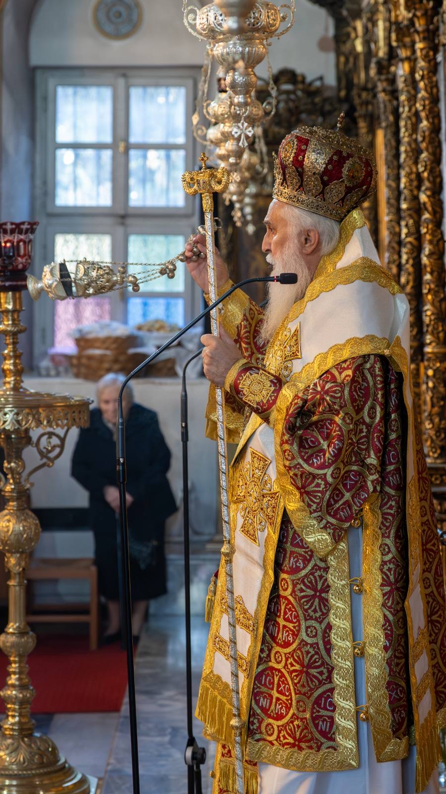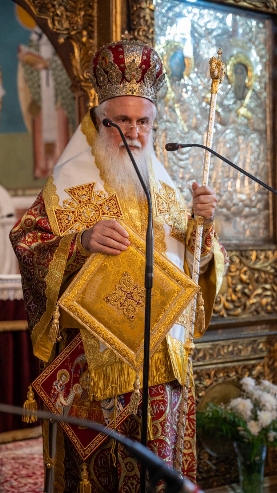 Στην αντιφώνησή του, ο Σεβ. Ποιμενάρχης μας, συγκινησιακά φορτισμένος, αφού επαίνεσε από καρδιάς τον π. Ηλία για την εξαετή πλησίον του διακονία, την οποία, όπως χαρακτηριστικά επισήμανε, επιτέλεσε με ένθεο ζήλο, φιλοτιμία, ήθος και διάκριση, χωρίς ουδέποτε να εκφράσει τον παραμικρό γογγυσμό, απηύθυνε προς αυτόν νουθετήριους λόγους πατρικής αγάπης, αναφερόμενος στο υψηλό και ευθυνοφόρο υπούργημα της Ιερωσύνης, το οποίο, όπως υπογράμμισε, δεν αποτελεί κοσμικό αξίωμα, αλλά βαρύτατο σταυρό, τον οποίο ο ίδιος καλείται να σηκώσει στους ώμους του, για χάρη του λαού του Θεού και της πνευματικής προκοπής του. Προέτρεψε, ακόμη, τον νεοχειροτονηθέντα ιερέα να έχει στη ζωή του ως υπόδειγμα υπακοής και ταπεινώσεως την άνευ όρων και ορίων θυσιαστική αγάπη του Κυρίου, την οποία, κατά την Παλαιά Διαθήκη, «ποταμοὶ οὐ συγκλύσουσιν καὶ ὕδωρ πολὺ οὐ δυνήσεται σβέσαι». Του υπενθύμισε, τέλος, ότι ο Σταυρός του Χριστού δεν είναι, απλώς, ένα σύμβολο θυσίας, αλλά αυτή η ίδια η φύση, η ταυτότητα και η αποστολή της Εκκλησίας, μάλιστα σε έναν σύγχρονο και ασταθή κόσμο, αιματοβαμμένο από τις πολεμικές συρράξεις, ο οποίος επιδιώκει μόνο την ανάσταση, χωρίς, όμως, να είναι διατεθειμένος να βαδίσει τη στενή και τεθλιμμένη οδό της σταυρικής πορείας, που οδηγεί στη χαρά της αιωνιότητας.