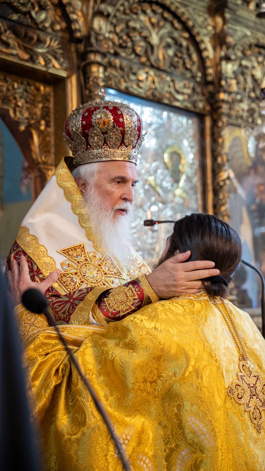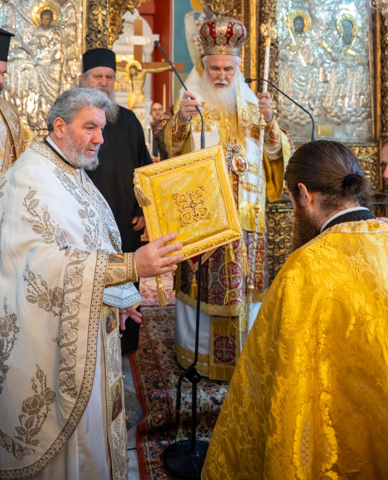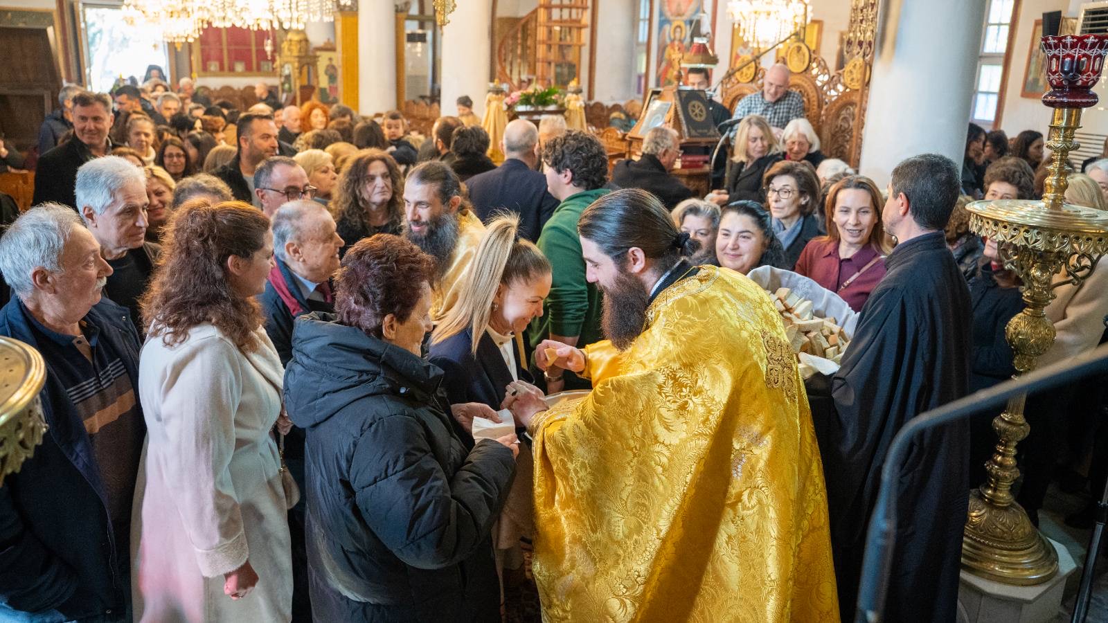 Προ του πέρατος της Ευχαριστιακής Συνάξεως, ο Σεβ. Ποιμενάρχης μας κ. Ιερόθεος, υπό τις επευφημίες του λαού, χειροθέτησε σε Πρωτοπρεσβύτερο τον π. Ηλία, ο οποίος, στη συνέχεια, κατόπιν προτροπής του Σεβασμιωτάτου, διένειμε το αντίδωρο και δέχθηκε τις εγκάρδιες ευχές του πυκνού εκκλησιάσματος.