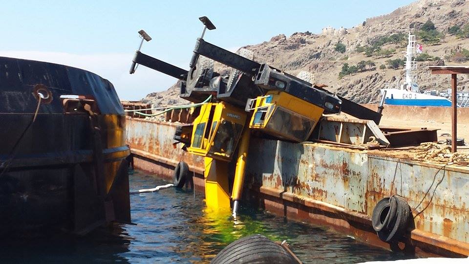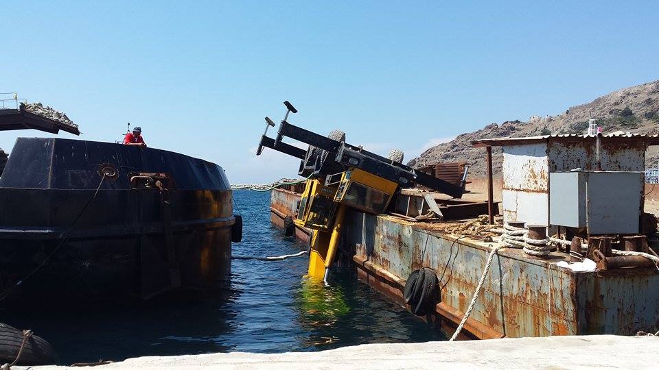 Στο σημείο έσπευσαν άντρες του λιμεναρχείου Μύρινας, που διαπίστωσαν ότι ο βραχίονας ανύψωσης ήταν βυθισμένος μέσα στη θάλασσα και το υπόλοιπο μέρος του γερανού παρέμενε κρεμασμένο στη μαούνα.