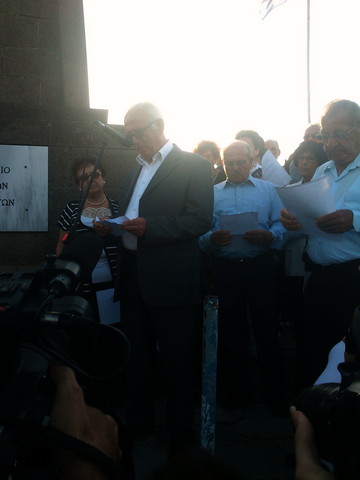 Ο πρόεδρος του Συνδέσμου Πολιτικών Καταδίκων του Αγώνα ΕΟΚΑ 1955-59, κ. Κυριάκος Γρηγοράς συγκλόνισε με την ομιλία του : «Κάθε ταξίδι μας στη μάνα Ελλάδα είναι προσκύνημα στον πιο ιερό χώρο της ψυχής μας. Γιατί με το όνομά της γεννηθήκαμε, γαλουχηθήκαμε, ανδρωθήκαμε, σφυρηλατήσαμε τα οράματα και ιδανικά μας και για την Ελλάδα αφιερωθήκαμε διά βίου. Εμείς οι αγωνιστές της ΕΟΚΑ δώσαμε αίμα, σώμα και ψυχή, νεκροφιλήσαμε ήρωες συναγωνιστές, που ξεψύχησαν με τη λέξη «Ελλάδα, ελευθερία».