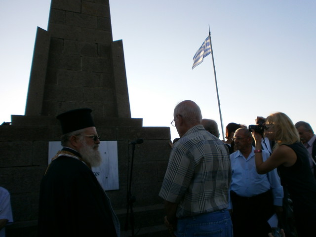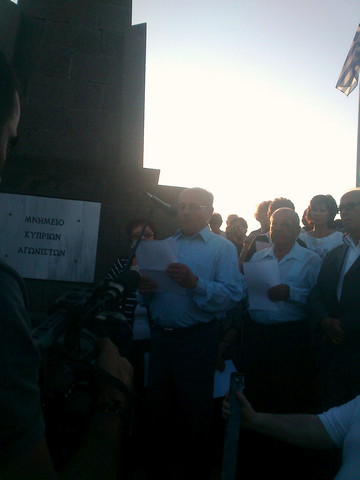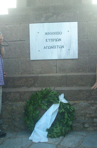 «Τα βήματά μας μάς έφεραν στο μνημείο αγωνιστών της κυπριακής ελευθερίας. Ρίγη συγκίνησης μας διακατέχει. Βάζουμε το σταυρό μας και θαυμάζουμε πως ο ωραίος αγώνας μας, ο προδομένος και αδικαίωτος, φεγγοβόλησε σε αυτό το απόμερο και άγνωστο για εμάς νησί. Πώς η λάβα της ψυχής μας, της λευτεριάς και της Ελλάδας πυρπόλησε και τις καρδιές και των αδελφών λημναίων ακριτών και μετουσιώθηκε σ’ αυτό το μνημείο τιμής και καταξίωσης του αγώνα της Κύπρου. Βάλσαμο στην τρικυμισμένη μας ψυχή αυτό το μνημείο. Παρηγοριά στον πόνο μας. Γιατί ο ελληνικός αγώνας δεν ήταν ένα πυροτέχνημα.